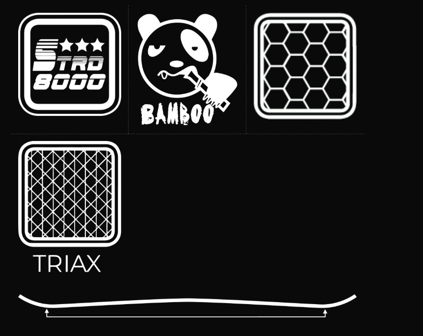 Bamboo Woodcore + Aluminium Honeycomb Inlays - ein Hybridkern, der natürliches Fahrgefühl mit Raumfahrttechnologie kombiniert. Die Aluminiumwaben unter den Bindungen sorgen für bemerkenswerte Dämpfung, Torsionssteifigkeit und Stabilität bei Geschwindigkeit.