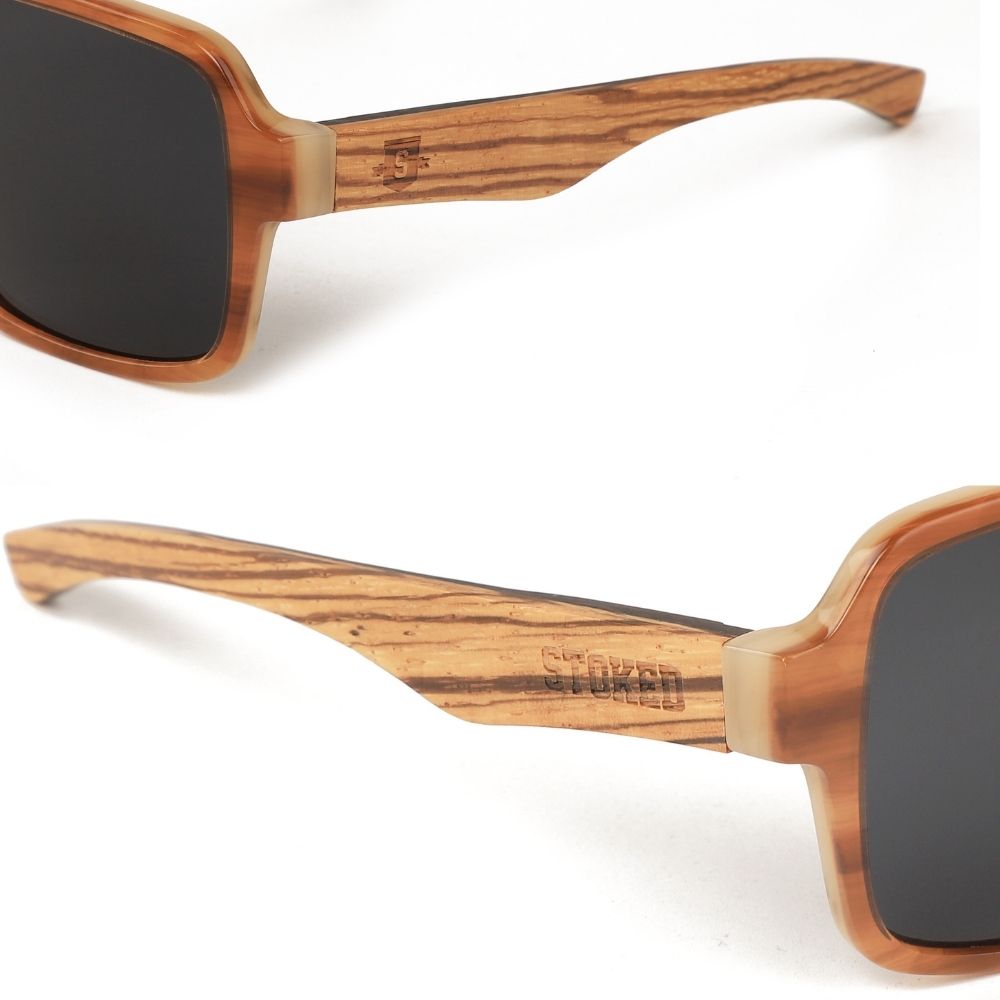 De Stoked Navigator Two Tone Acetate Two Tone Amber + Grey Lens is een awesome, handgemaakte zonnebril die zeer hoogwaardig werd afgewerkt. Het frame combineert acetaat met hout & metalen detailafwerkingen. Een milieuvriendelijk alternatief voor klassieke kunststoffen. Dankzij het lichte gewicht, is het een zeer comfortabel model dat je uren kan dragen. Daarbij ervaar je met deze unieke Stoked zonnebril optimale bescherming tegen de zon & worden schitteringen opgevangen dankzij de polarized TAC UV400 glazen.