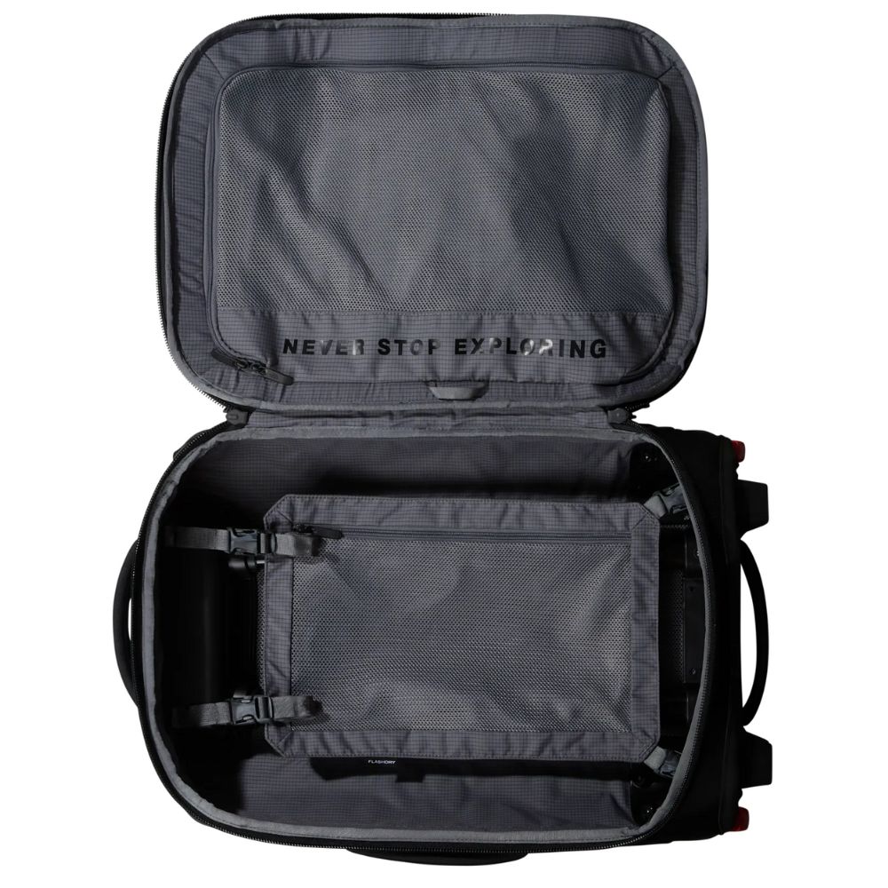 Der TNF Base Camp Rolling Thunder 22" ist superstark und vielseitig, eine Mischung aus Haltbarkeit für die Berge und hochwertiger Organisation für häufige Flüge oder Wochenendabenteuer. Die Tasche hat ein großzügiges Fassungsvermögen von 40 Litern, passt aber in die Gepäckfächer der meisten Fluggesellschaften. Und da sie aus extrem strapazierfähigem, recyceltem Base Camp-Material mit einem verbesserten Hardshell-Gehäuse gefertigt ist, das dafür ausgelegt ist, immer wieder um die Welt zu reisen, kann sie - genau wie ihr Vorgänger - auch einem längeren, rauen Einsatz standhalten. Die speziell modellierten Räder machen das Rollen zum Kinderspiel, selbst auf unebenem Gelände. Mit den Kompressionsriemen aus Gurtband können Sie Ihre Ausrüstung sichern oder die Tasche komprimieren, wenn sie nicht voll ist. Die gepolsterten Griffe an den Seiten und an der Oberseite sind sehr bequem und machen die Tasche in vielerlei Hinsicht tragbar. Sie verfügt über zahlreiche Taschen für Reiseutensilien und schmutzige Kleidung sowie über Befestigungspunkte, an denen Sie zusätzliche Dinge anbringen können. Wenn Sie Platz sparen müssen, können Sie Ihre Kleidung mit dem internen Kompressionsfach komprimieren. Außerdem ist der Reißverschluss abschließbar, so dass Ihre Sachen sicher sind und Sie sich beruhigt auf Ihr Reiseziel konzentrieren können.