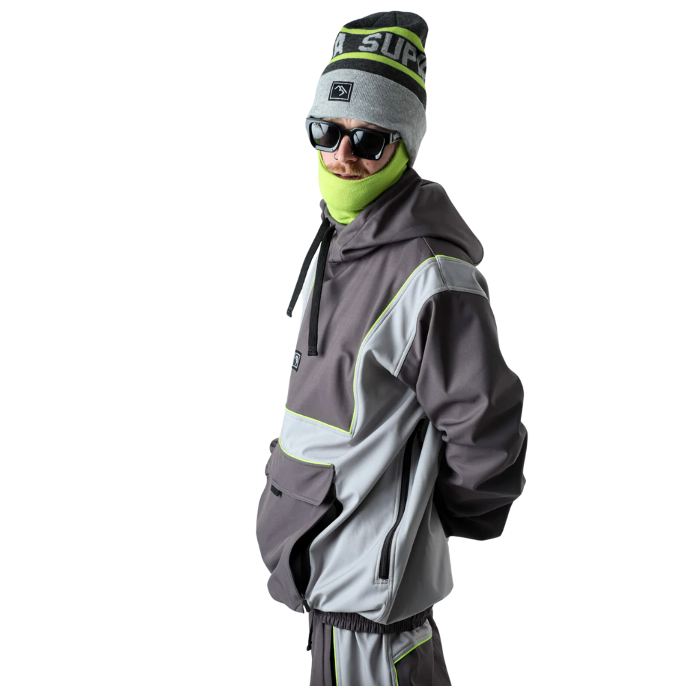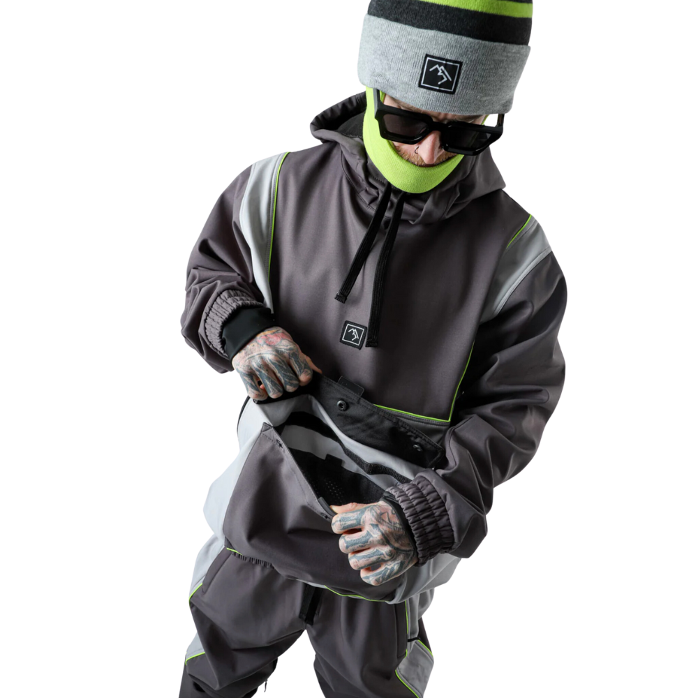 Der Baseline Pullover von Brethren Apparel ist ein Hybridprodukt, das die besten Elemente des Access Collection Anoraks und des Shredduh Hoodies vereint. Ein wasserdichter Pullover mit der gleichen superweichen, verschweißten Fleece-Schicht auf der Innenseite.