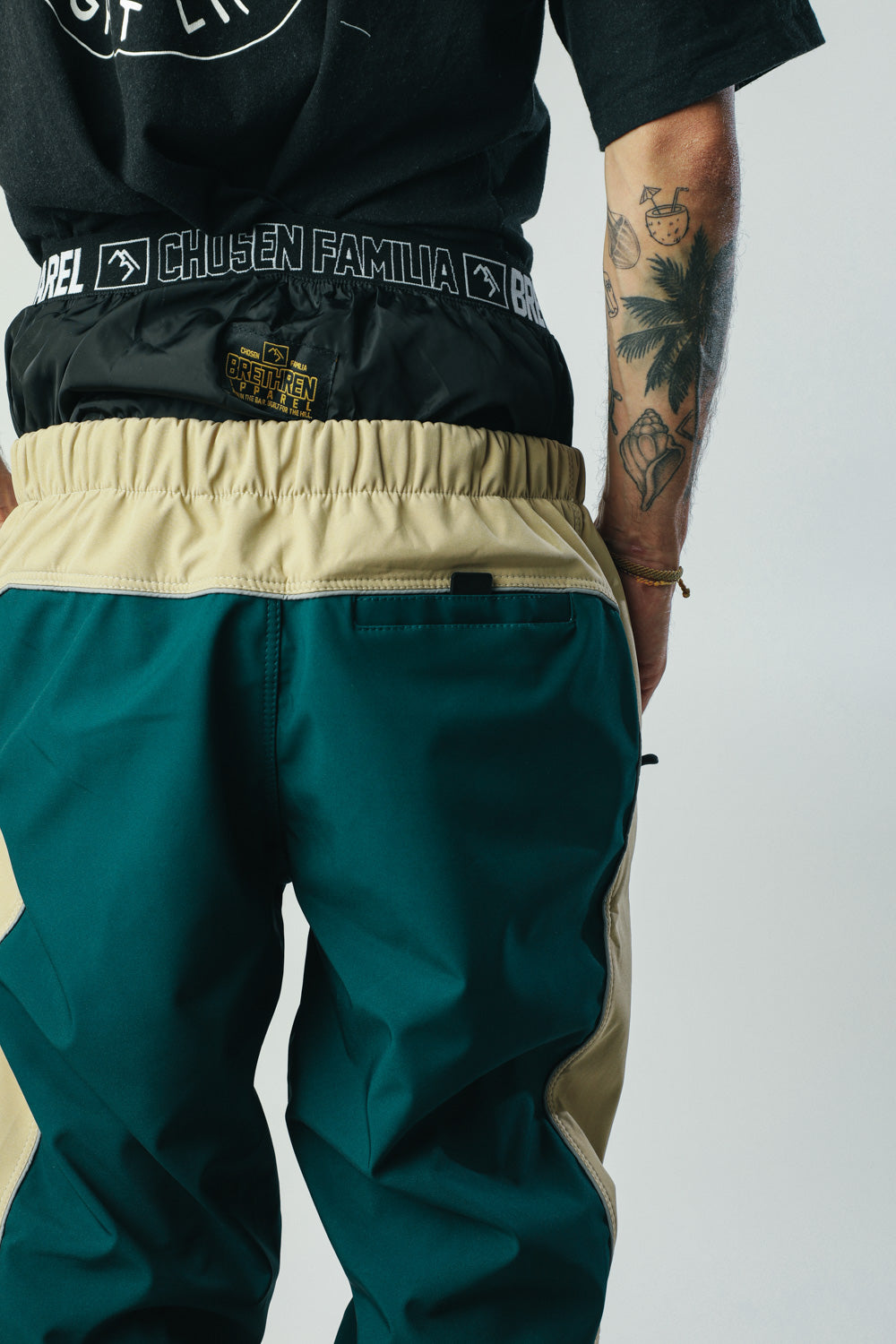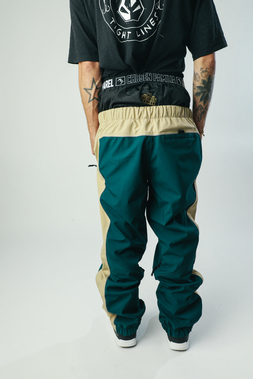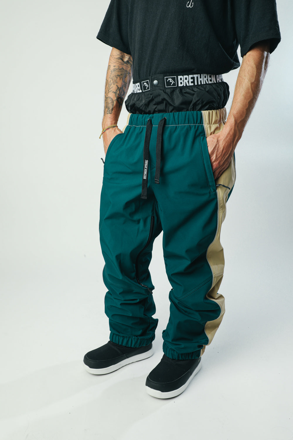 Die Baseline Trackpants Combat Khaki von Brethren Apparel ist eine reduzierte und vereinfachte Snowboardhose ohne Kompromisse bei Technologie und Komfort. Genau das, was du für einen Tag auf der Piste brauchst.