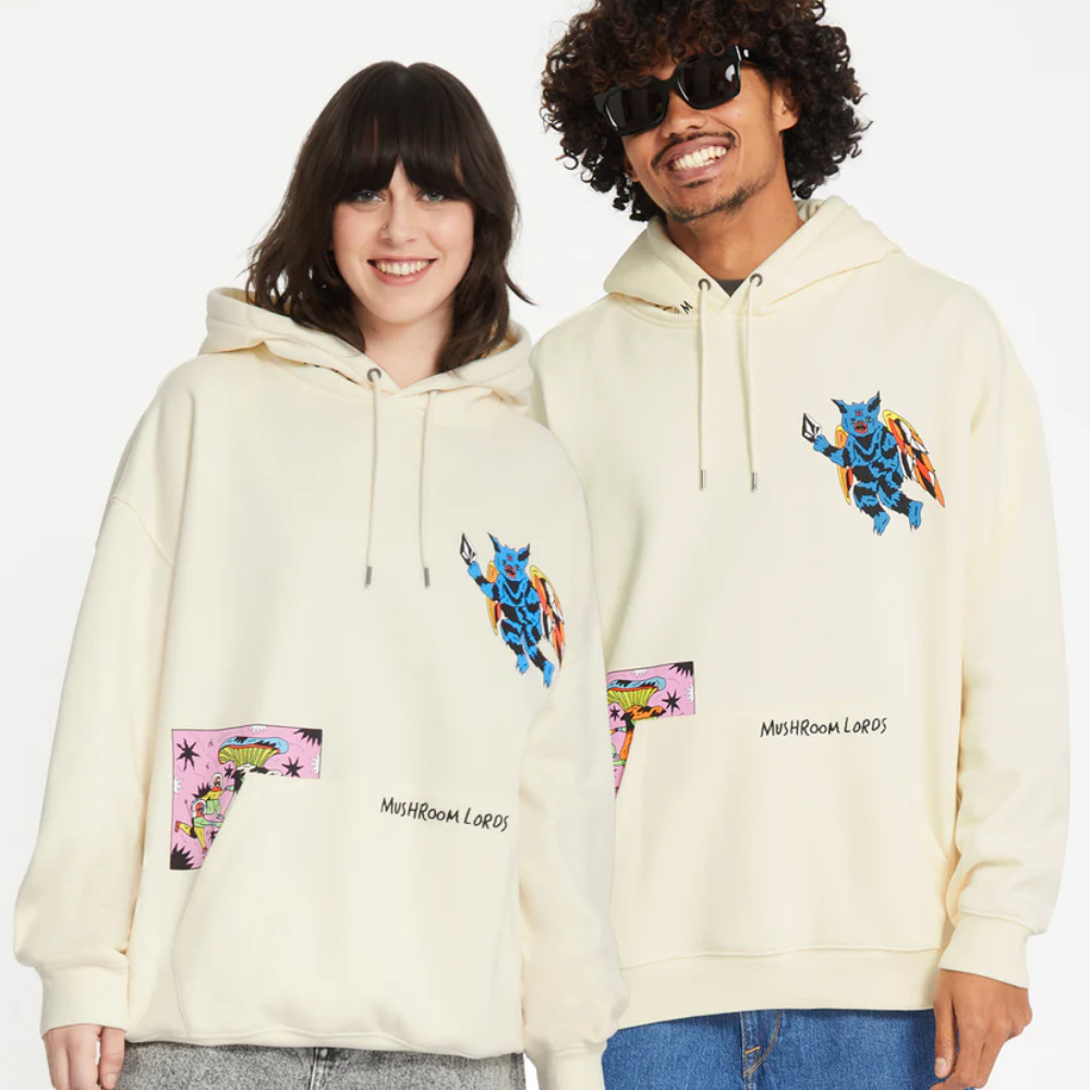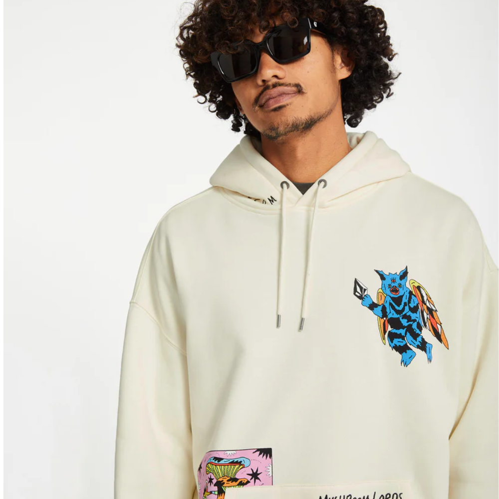 Der Volcom Bob Mollema 2 Hoodie in Hellbeige kombiniert eine bequeme, lockere Passform mit künstlerischen Details. Dieser Kapuzenpullover aus Fleece hat einen stylischen Print auf der Brust, Stickereien auf der Tasche und der Kapuze sowie metallische Volcom Akzente. Das einzigartige Design stammt von dem talentierten Bob Mollema. Hergestellt aus mindestens 20% recyceltem Polyester für eine nachhaltige und stilvolle Wahl.