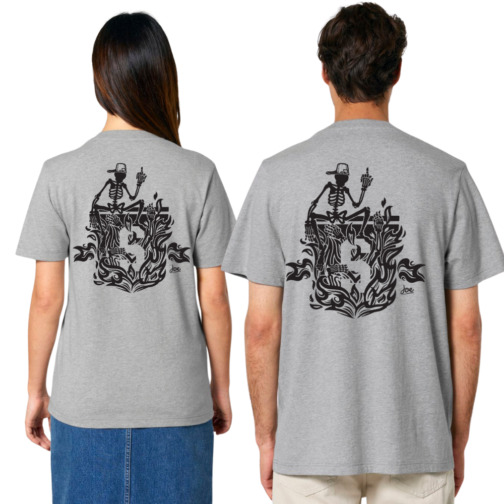 Das Burning Man T-Shirt aus Joe Robinsons exklusiver Kollektion in limitierter Auflage ist eine Explosion von Energie und Leidenschaft. Das ikonische Design mit dem brennenden Totenkopf auf der Vorderseite und dem Burning Man auf der Rückseite ist ein kühnes Statement für alle, die ihren Eifer nicht verstecken. Dieses T-Shirt ist für die Rebellen, die Draufgänger und diejenigen, die keine Angst davor haben, ihre Leidenschaft brennen zu lassen.