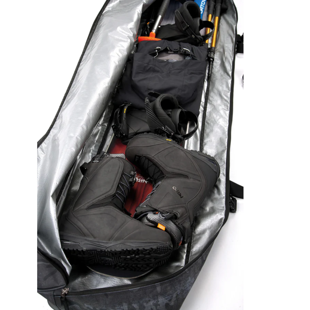 Das Nitro Cargo Board Bag in der Farbe Forged Camo ist der perfekte Reisepartner für Snowboarder. Das robuste Boardbag bietet Platz für bis zu drei Boards und verfügt über verstärkte und gepolsterte Belastungspunkte für optimalen Schutz. Mit praktischen Features wie einer externen Tool-Reißverschlusstasche, einem ergonomischen Schultergurt, Kompressionsriemen und einem integrierten Reparaturset sind Sie immer und überall gut gerüstet.