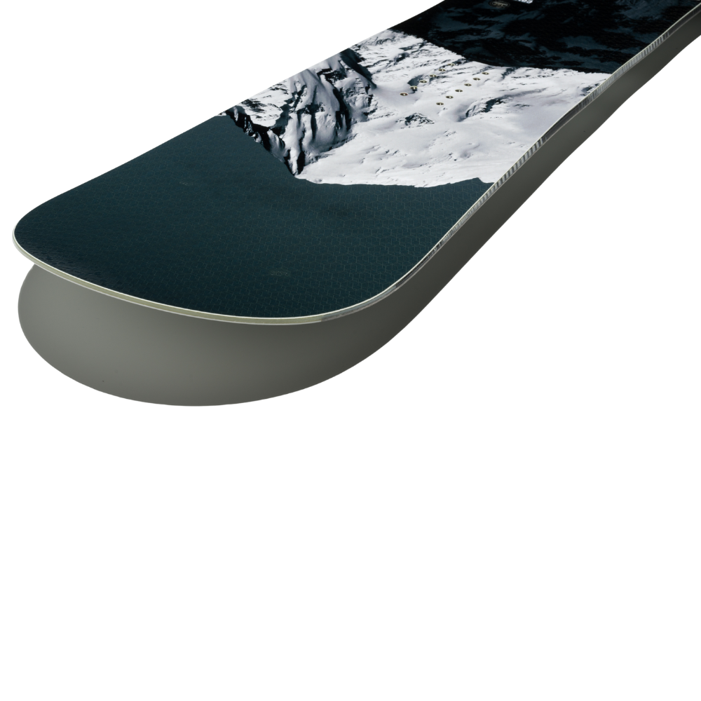 Richtungsweisend - Bei diesem Shape ist die Bindung weiter hinten positioniert, wodurch das Snowboard eine längere Nose erhält. Das macht das Snowboard perfekt für Freeride und All-Mountain und gibt dir mehr Auftrieb im Powder.