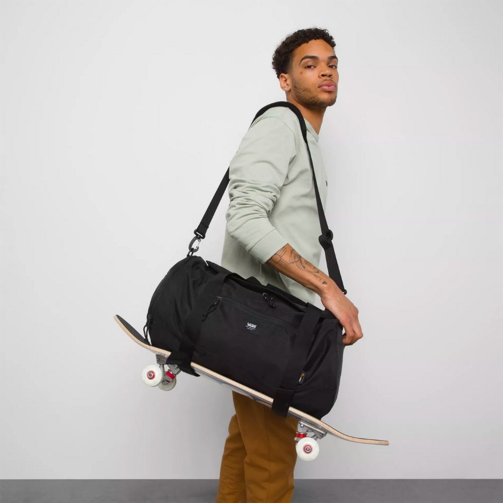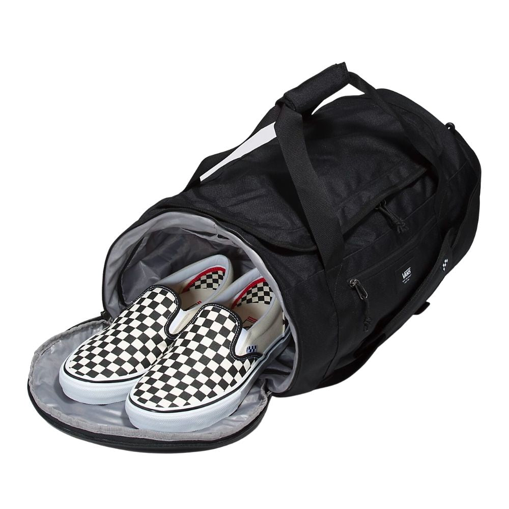 De Vans DX Skate Duffeltas is gemaakt om lang mee te gaan, van het skatepark tot waar de dag je ook maar brengt. Hij heeft buitenvakken, een afneembare schouderriem en verstelbare draagbanden voor je skateboard. Er is ook een uitneembaar schoenenvak met trekkoord en het hoofdvak is voorzien van een anti-geurbehandeling om dingen fris te houden.