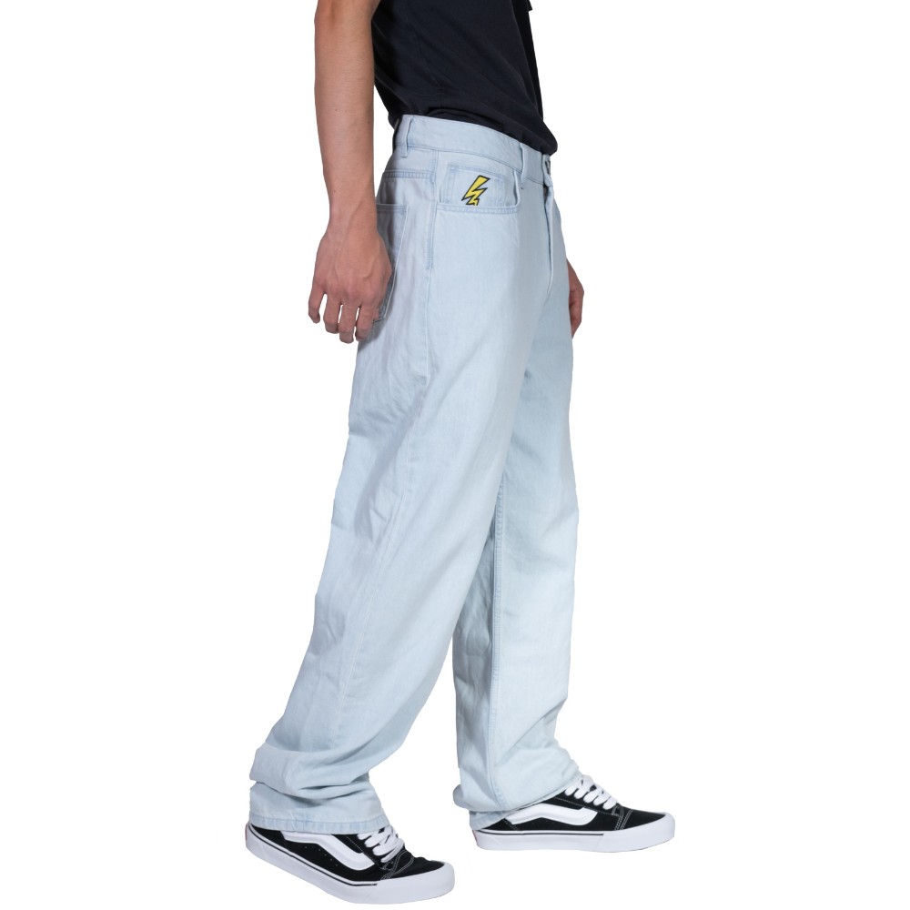 Die Stoked Electric Baggy Jeans Light Blue bietet die perfekte Mischung aus Robustheit und Stil. Diese Unisex-Jeans aus schwerem Denim aus 100 % Baumwolle ist so konzipiert, dass sie sowohl für intensives Skaten als auch für lässige Streetwear geeignet ist. Die taillierte Passform sorgt dafür, dass sie gut über die Schuhe passt, während die geräumige Passform Ihnen die Freiheit gibt, sich bequem zu bewegen.