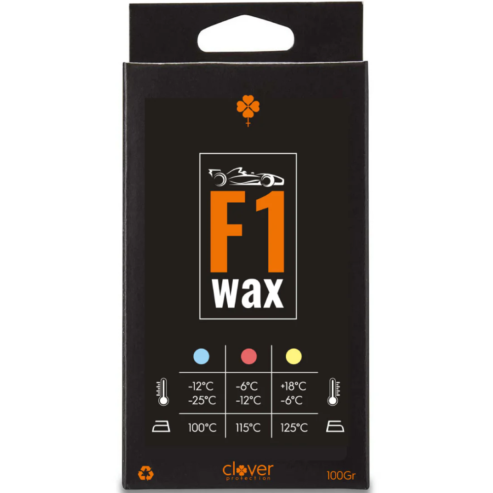 Clover F1 Wax 100gr Rot gleitet durch alle Terrains so schnell wie ein Formel 1 Auto. Einfach mit einem Wachseisen aufzutragen. Ideal für Temperaturen zwischen -12°C und -6°C.