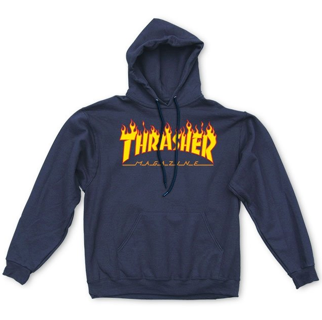 Der Thrasher Flame Logo Hoodie Navy Blue ist eine Ikone in der Skateboard-Szene. Diese Hoodies wurden vom berühmten Thrasher Magazine veröffentlicht. Dieser Kapuzenpullover verfügt über das Skateboard Magazine-Logo auf der Vorderseite, eine Kängurutasche vorne und eine gefütterte Kapuze.