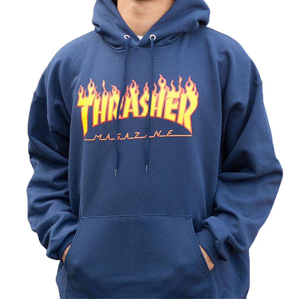Thrasher Flammen-Logo-Hoodie in Marineblau