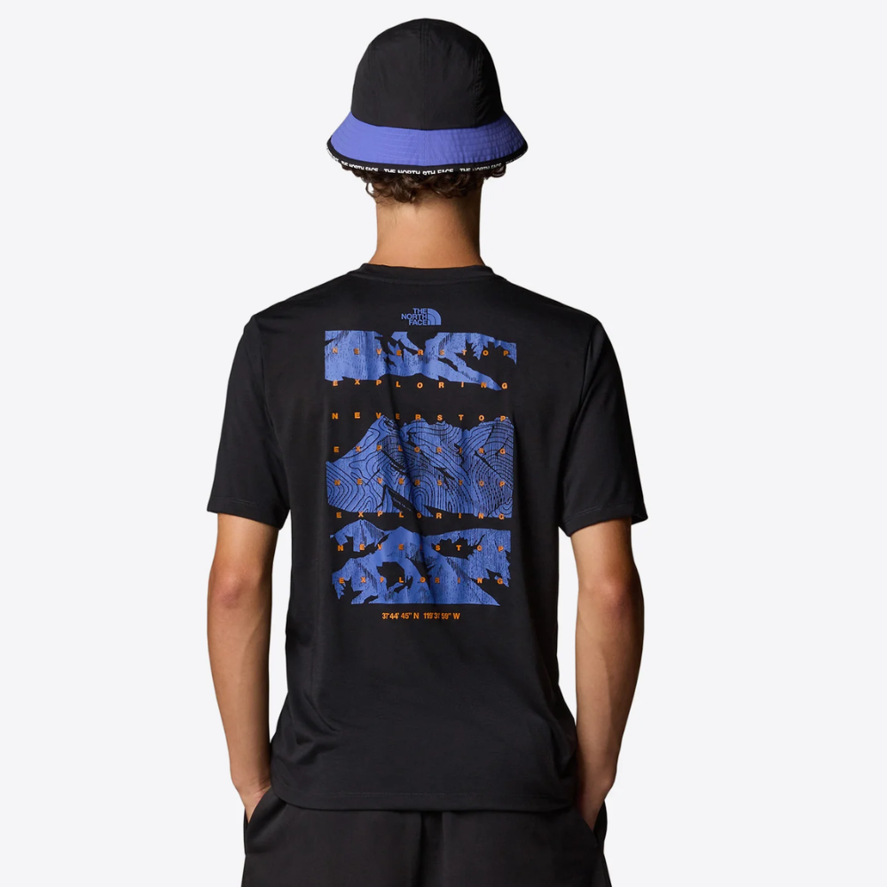 Pantherschwarz (tnf black) als Leinwand für den auffälligen Mountains Faces-Druck