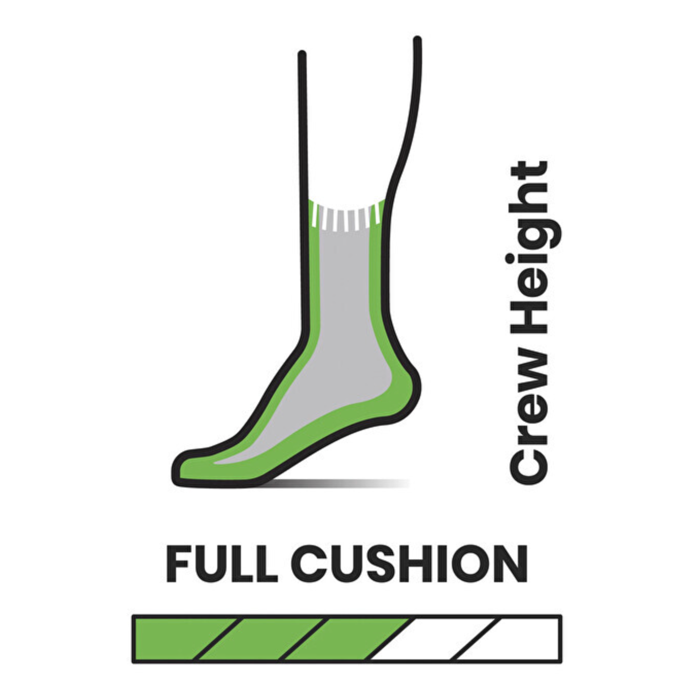 Die Full Cushion Crew Wandersocken von Smartwool bieten durch die Polsterung in der gesamten Socke ein Maximum an Wärme und Schutz. Durch die Indestructawool™ Technologie halten die Wandersocken aus strapazierfähiger ZQ-zertifizierter Merinowolle besonders lange, während das 4 Degree™ Elite Fit System für eine leistungsorientierte Passform sorgt und das Virtually Seamless™ Tee mehr Komfort im Schuh bietet. Das Smartwool Wandersortiment erhielt ein Update mit besseren Mesh-Zonen für zusätzliche Atmungsaktivität und einer neuen Lagenstruktur, die Fusseln reduziert und ein besseres Handgefühl und mehr Komfort bietet. Ganz zu schweigen davon, dass unsere außergewöhnlich bequemen und perfekt sitzenden Wandersocken jetzt aus recyceltem Nylon hergestellt werden, was sie haltbarer macht als je zuvor. So fühlen Sie sich nicht nur IN diesen Socken wohl, sondern auch ÜBER diesen Socken.