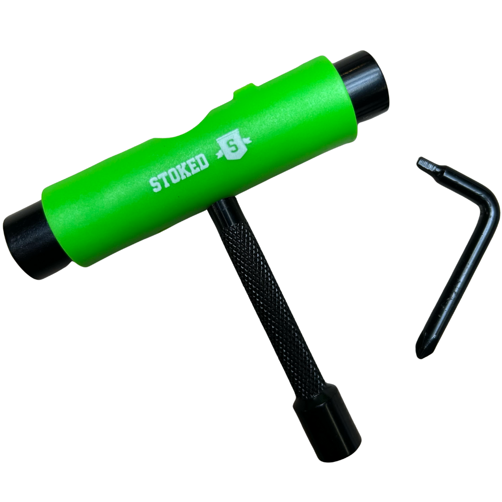Das Stoked Metal Handle Skate Tool wurde von der europäischen Stoked Board Co. in Zusammenarbeit mit Stoked Pro Skatern entwickelt. Dieses sehr handliche All-in-One-Skate-Tool dient zum Festziehen Ihrer Skateboardfeilen, Achsen oder Schrauben. Außerdem ist diese Full Metal Version besonders robust. Wenn Sie viel skaten, wissen Sie, dass es immer cool ist, ein gutes Werkzeug zur Hand zu haben.