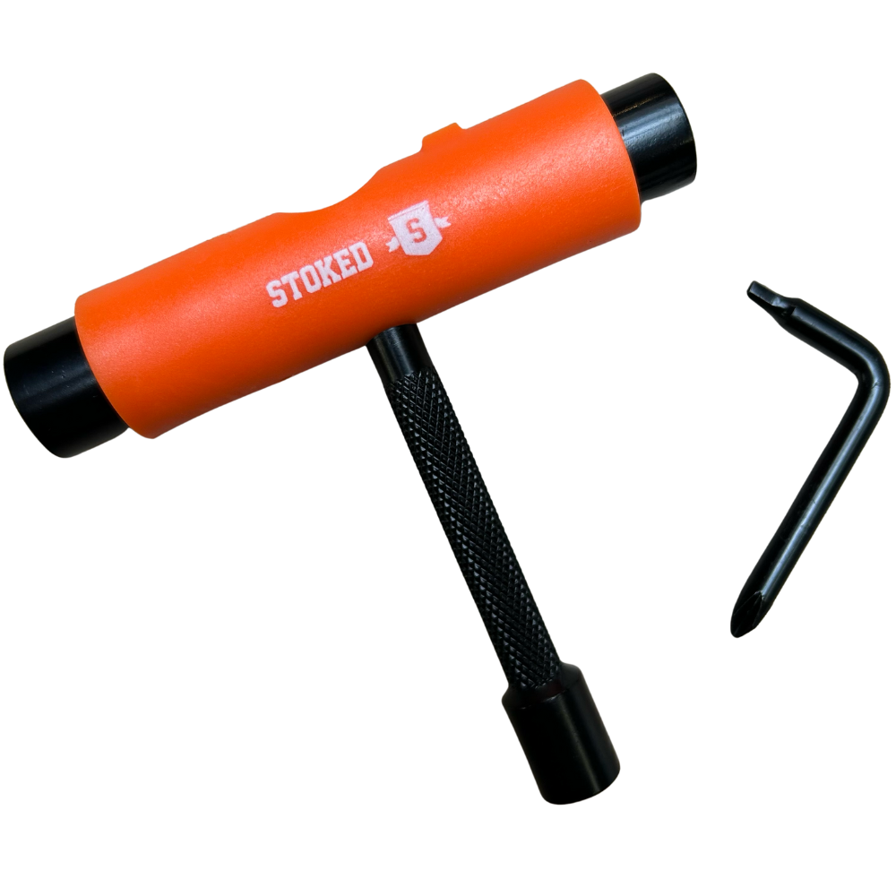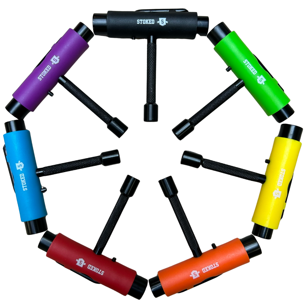 Das Stoked Metal Handle Skate Tool wurde von der europäischen Stoked Board Co. in Zusammenarbeit mit Stoked Pro Skatern entwickelt. Dieses sehr handliche All-in-One-Skate-Tool dient zum Festziehen Ihrer Skateboardfeilen, Achsen oder Schrauben. Außerdem ist diese Full Metal Version besonders robust. Wenn Sie viel skaten, wissen Sie, dass es immer cool ist, ein gutes Werkzeug zur Hand zu haben.