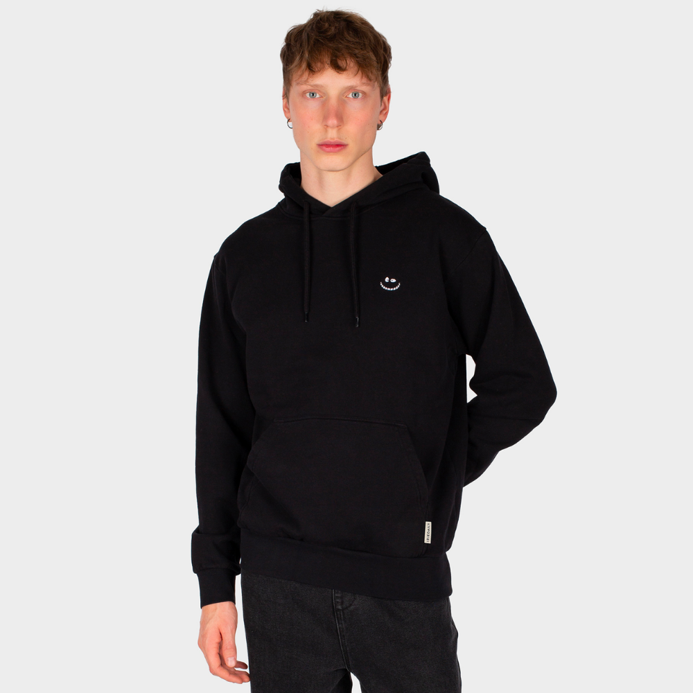Ein kultiges Design kombiniert mit einem umweltbewussten Ansatz: das ist der Grin Cat Hoodie in Schwarz. Dieser Hoodie bietet nicht nur die Weichheit und Qualität von Bio-Baumwolle, sondern auch ein einzigartiges Design direkt aus dem Iriedaily Design Lab.