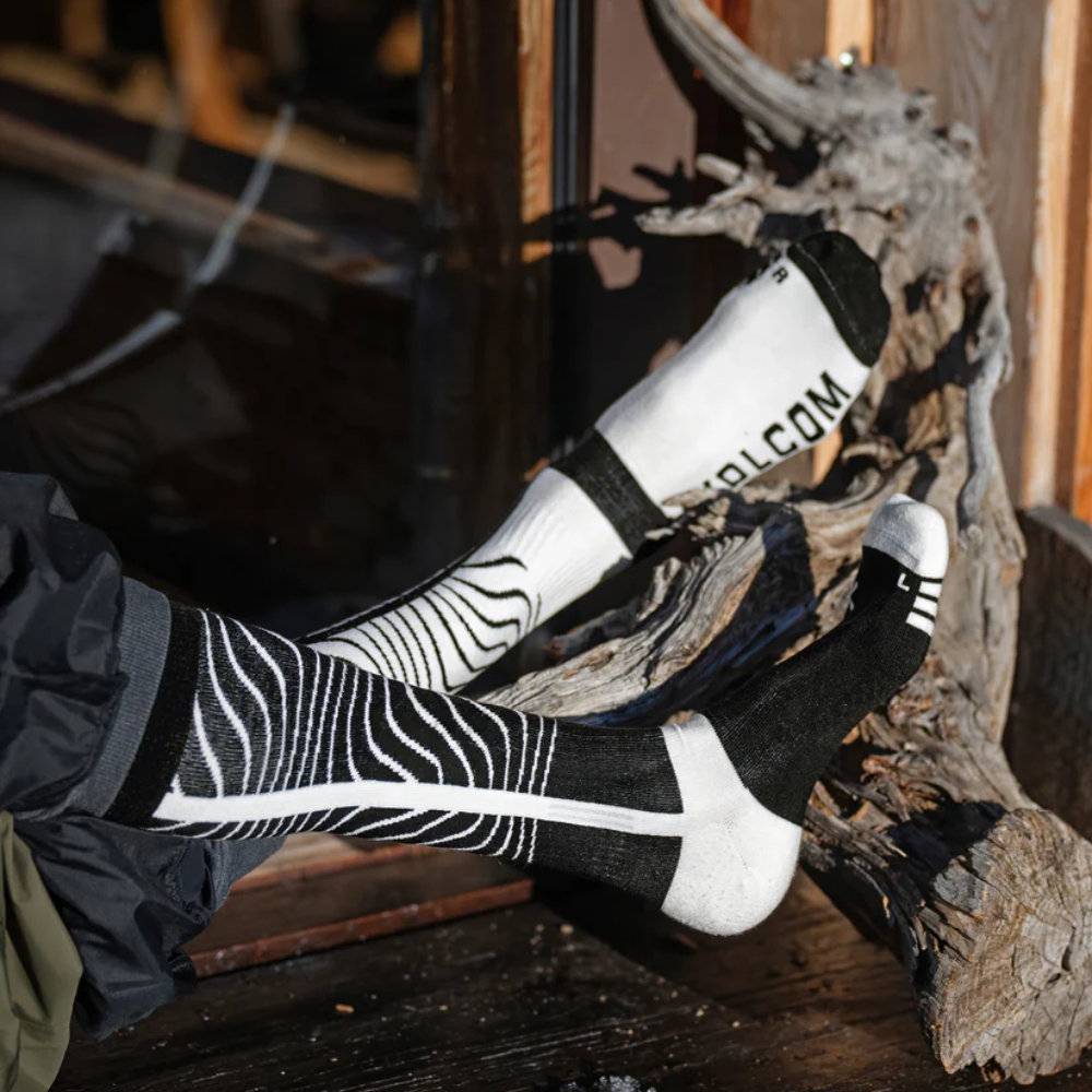 Die Volcom Heavy Over-The-Calf Sock - Black bietet ultimativen Schutz und Komfort für Ihre Füße während intensiver Tage auf dem Berg. Diese robusten, über der Wade getragenen Schneesocken haben eine zusätzliche Polsterung am Knöchel und im Fußbett, kombiniert mit einer strategischen Fußgewölbestütze. Der innovative Luftkanal hält Ihre Füße kühl und trocken, während der Stay-Up Cuff den ganzen Tag über für einen perfekten, hochsitzenden Sitz sorgt.