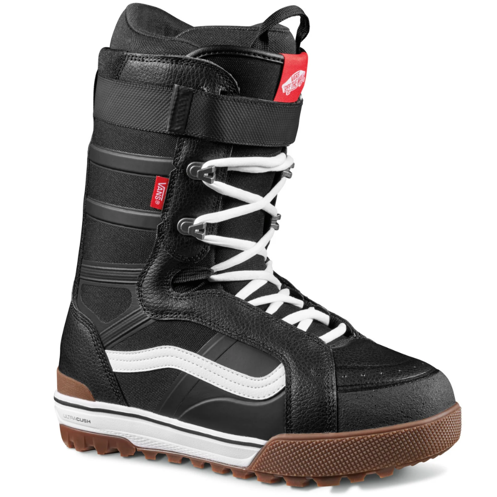 Die Vans Hi-Standard Pro Black/White 2025 Snowboardboots werden alle deine Erwartungen erfüllen. Dieses Modell hat eine mittelhohen Flex und eine All-Trac-Gummisohle für besseren Halt.