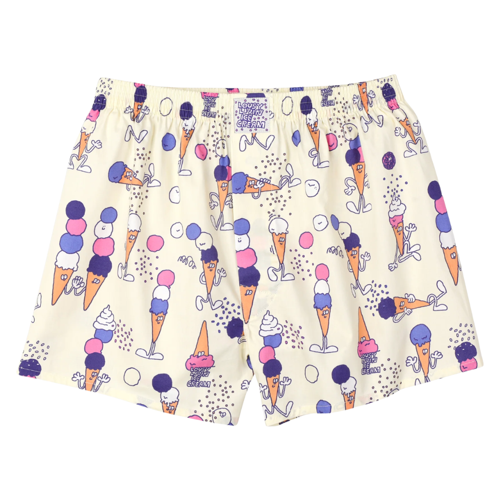Die Lousy Livin Icecream Boxershorts Sorbet sind sehr bequeme Boxershorts. Jede Kugel Eiscreme ist ein Sonnenstrahl. Außerdem fühlen sie sich auch sehr weich an. Sie sind aus 100% Baumwolle hergestellt. Die breiteren Beine machen sie super bequem zu tragen.