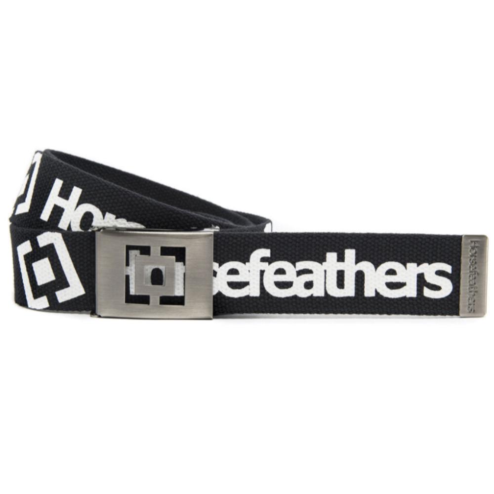 Der Horsefeathers Idol Belt Black/White hat eine Metallschnalle mit Horsefeathers-Logo auf der Außenseite und als Bonus befindet sich ein Bieröffner auf der Rückseite der Schnalle.