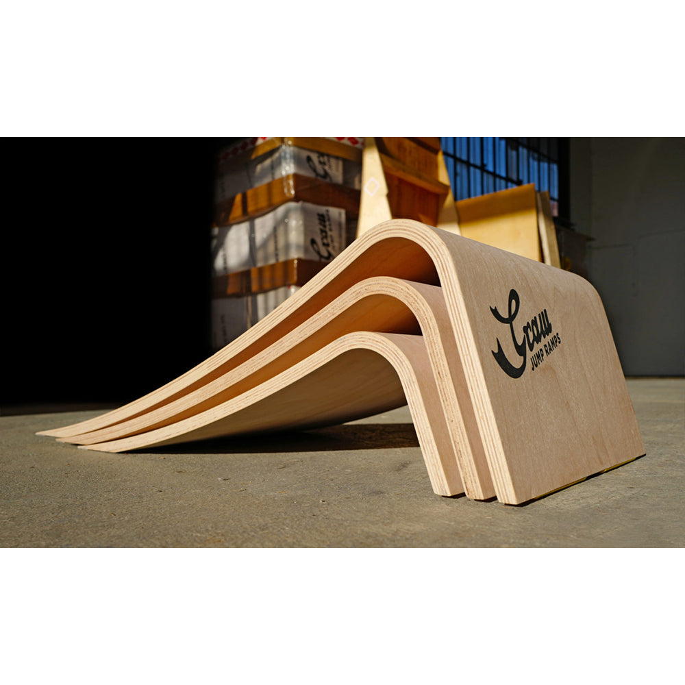 De Graw Jump Ramps werden gemaakt uit een zeer sterk en lichte beukenhout multiplex plaat van 15mm dik. Deze kickers zijn klein van formaat maar sterk van kern. Ze zijn verkrijgbaar in 3 verschillende hoogten. Dankzij hun lichte gewicht (max 4 kg) kan je ze makkelijk overal mee naar toe nemen & snel verplaatsen. Er is geen verdere installatie vereist. De rubberen pads bieden een maximum aan stabiliteit in alle omstandigheden.