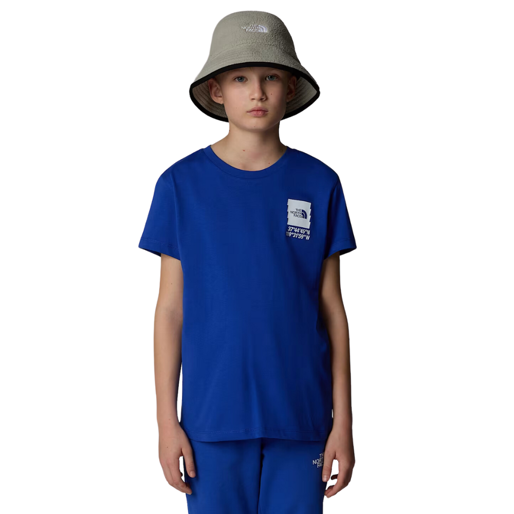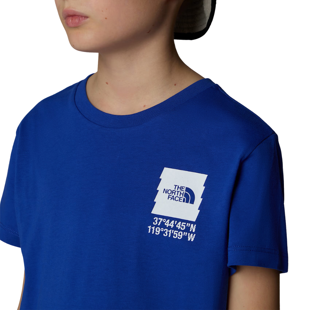 Das The North Face Kids Coordinates Graphic T-Shirt TNF Blue zeigt eine auffällige The North Face®-Grafik auf dem Rücken und ist aus reiner Baumwolle gefertigt.