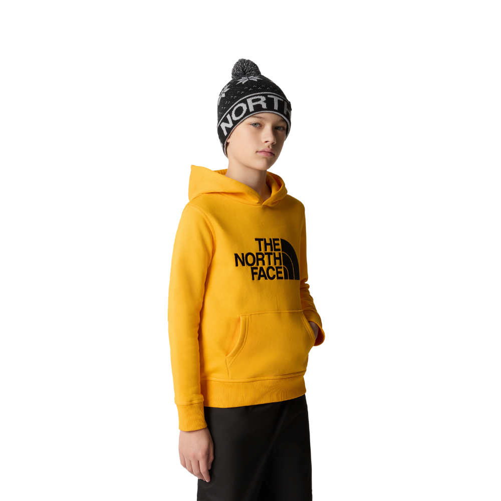 Der Kids Drew Peak Hoodie Summit Gold ist ein Klassiker aus der The North Face Kollektion und ideal für junge Abenteurer. Er ist ein vielseitiges Kleidungsstück, das vor allem bei kälterem Wetter für Wärme und Komfort sorgt.