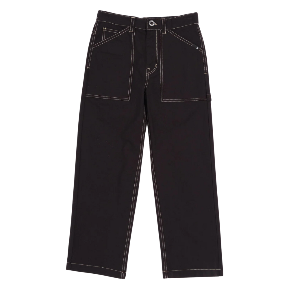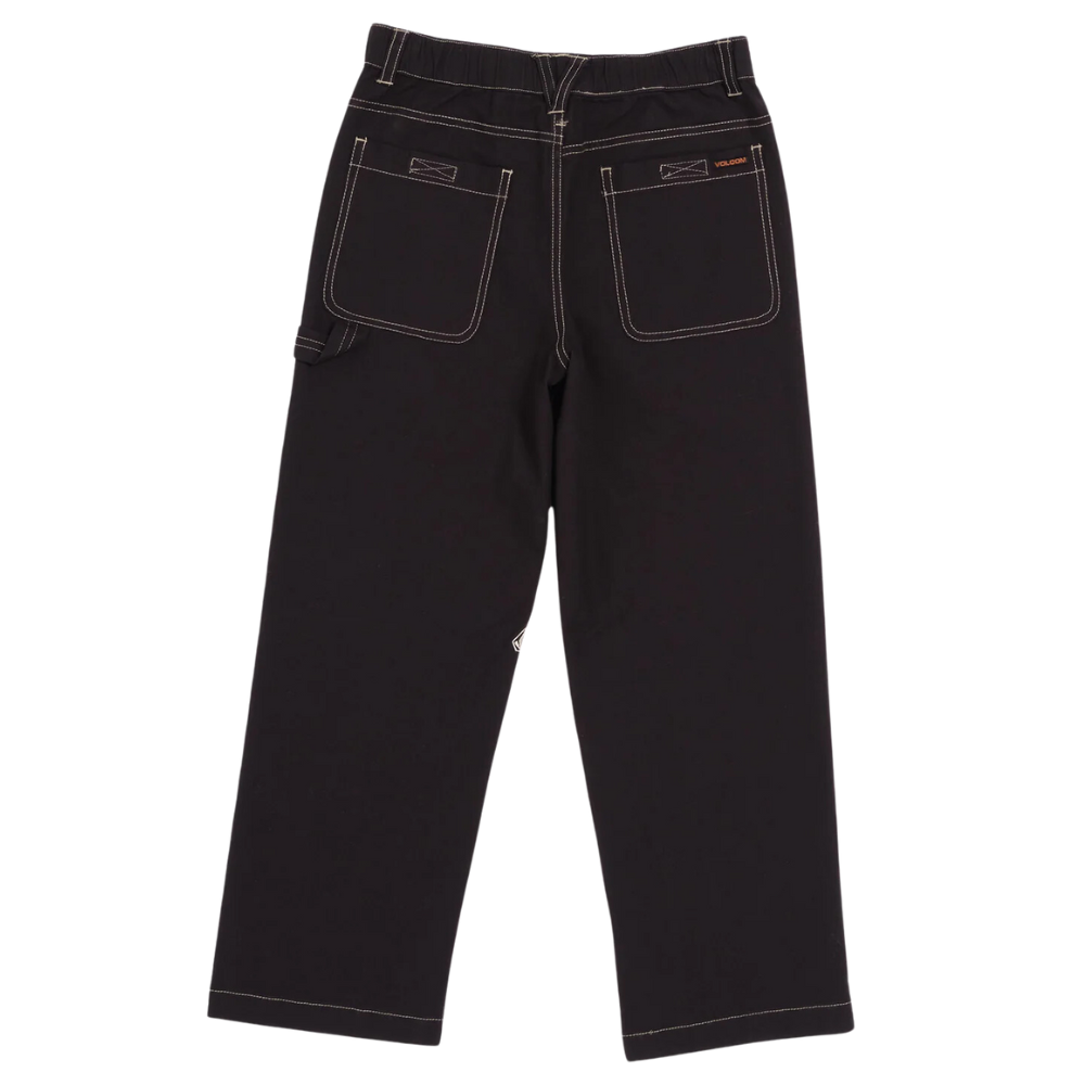 Die Volcom Krafter Kombat Trousers - Black für Kinder kombinieren ein cooles Workwear-Design mit Komfort und Funktionalität. Diese Hose hat eine lockere Passform und eine entspannte Taille, was sie perfekt für aktive Tage macht. Der halb feste, halb elastische Bund sorgt für zusätzliche Flexibilität, während die stabilen, schrägen Seitentaschen und die großen Gesäßtaschen mit Klettverschluss viel Stauraum bieten. Vorgewaschen für zusätzliche Weichheit und eine gute Passform, ist diese Hose ideal für den Alltag.