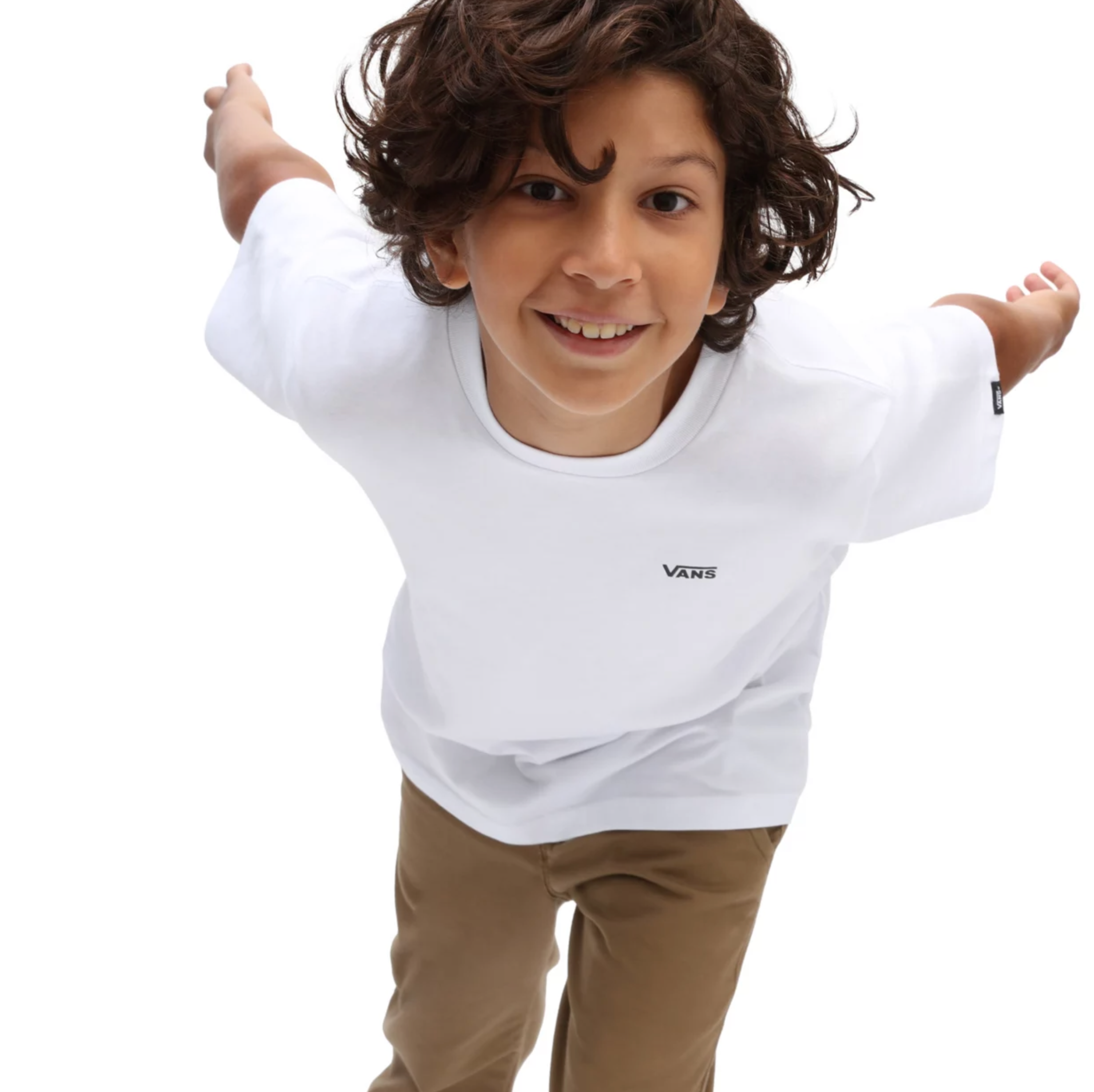 De Vans Kids Left Chest T-shirt White is een echte klassieker van Vans. Deze heeft het Vans logo op de linkerborst en past perfect op iedere broek.