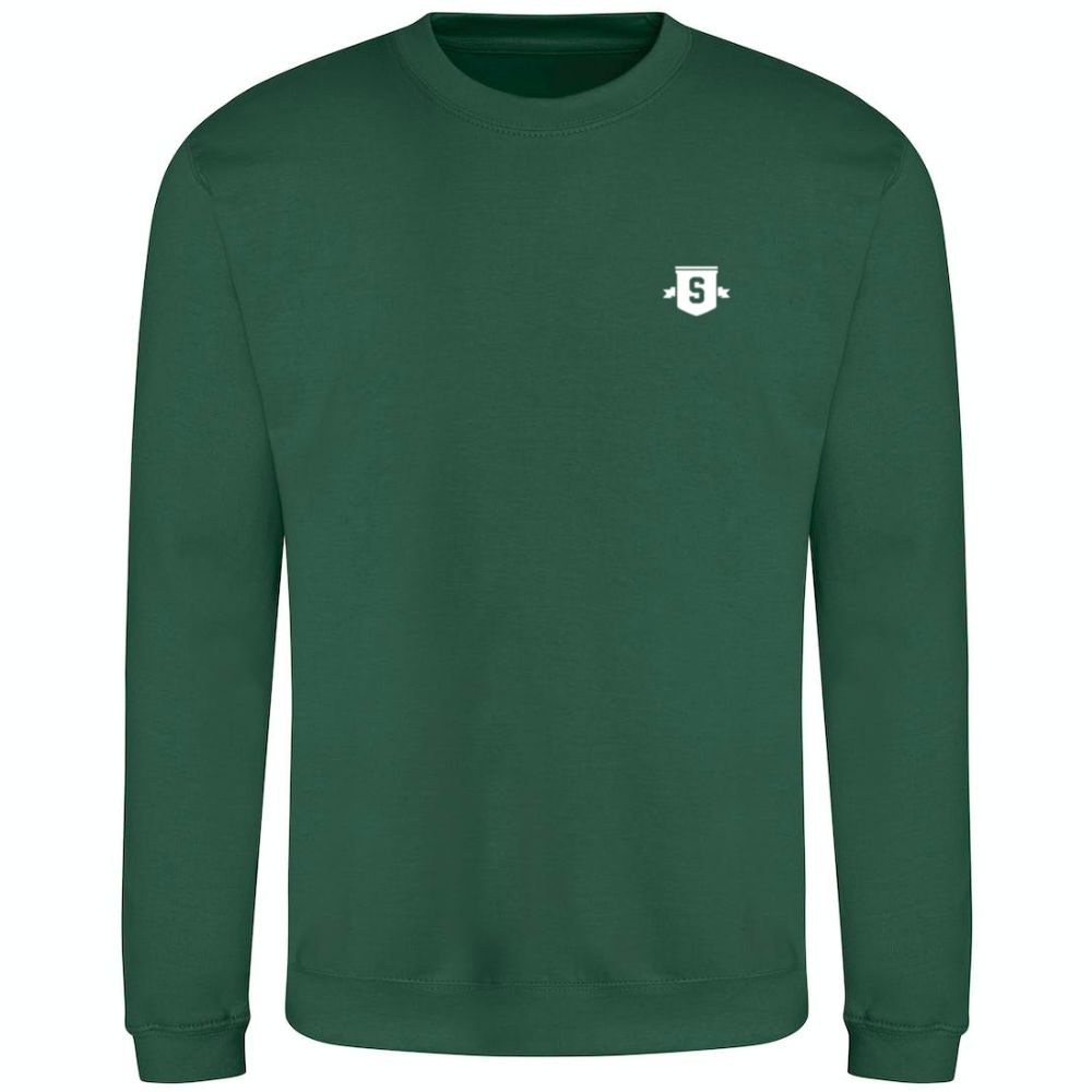 Met de Kids Mini Shield Sweater Bottle Green van Stoked Board Co represent je jouw favoriete boardmerk met classy style. Het Stoked Script logo subtiel op de borst laat zien hoe hyped jij bent en geeft een mooi contrast op de sweater. Een comfortabele neklijn en zachte binnenkant maken deze sweater helemaal af.