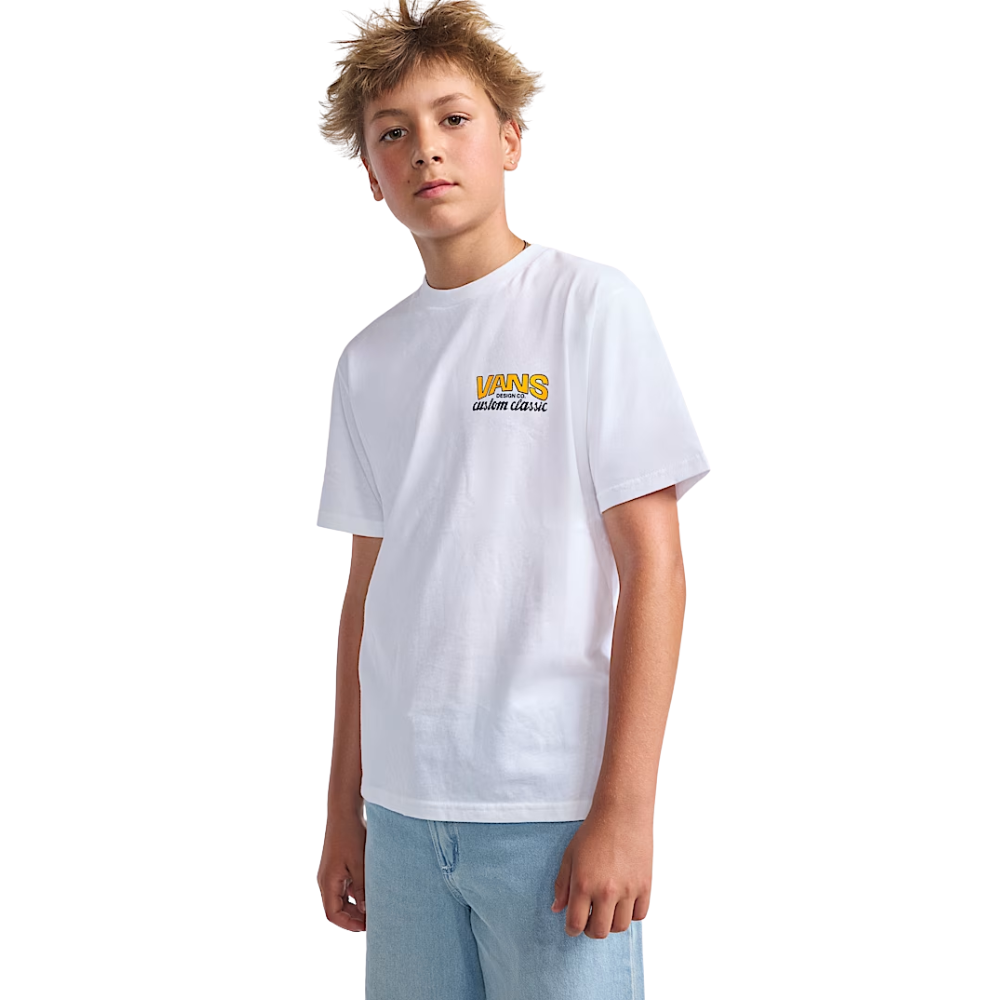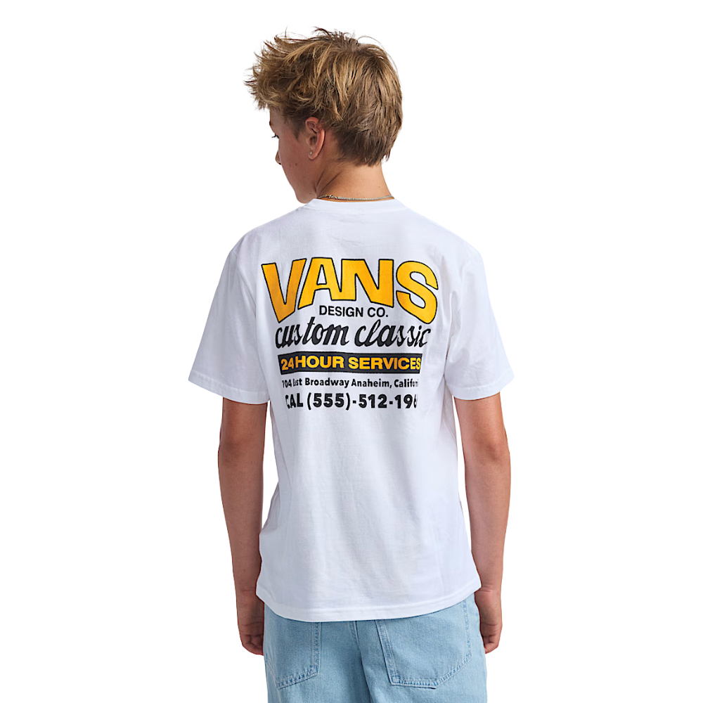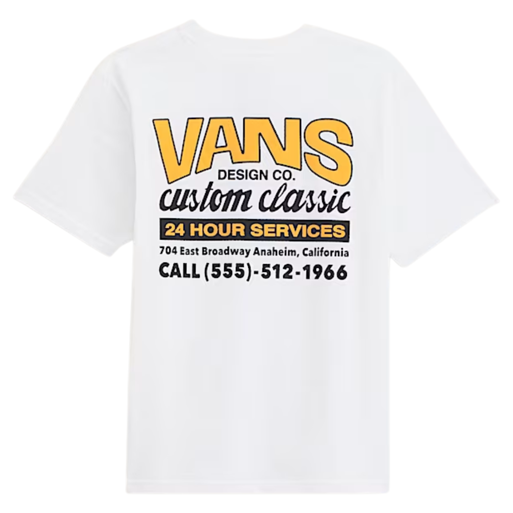 Das Vans Kids Shop Front T-Shirt White ist eine Ode an die Wurzeln der Marke, mit einer Grafik, die an den klassischen Skateshop erinnert. Ein cleanes T-Shirt mit Charakter - perfekt für den Alltag.