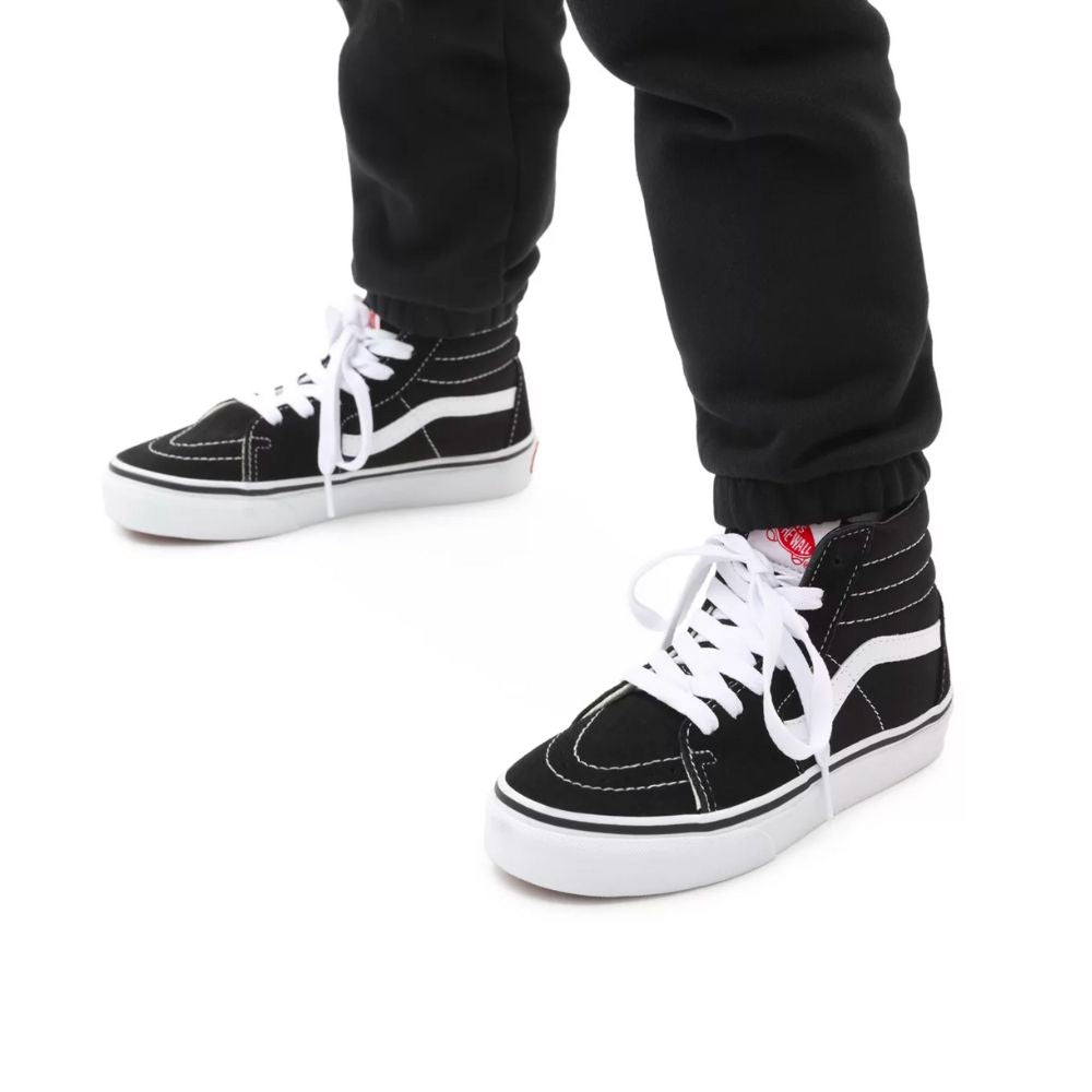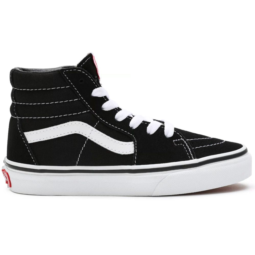 De Vans Kids Kids Skate Sk8-Hi Black/True White brengt een oude klassieker helemaal terug. Deze is net zo cool als de volwassen versie. Perfect voor youngsters om te skaten of naar school te gaan