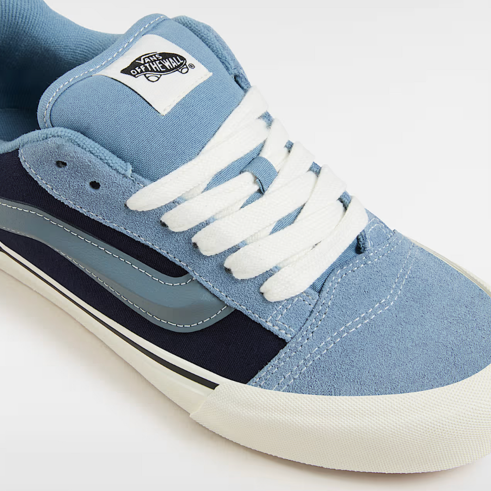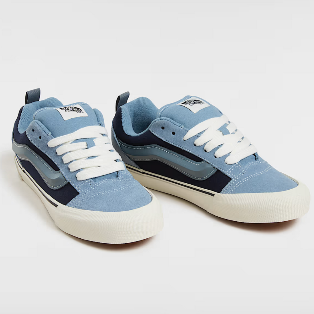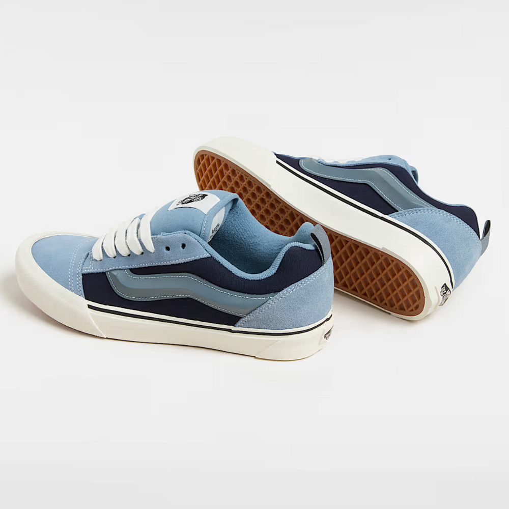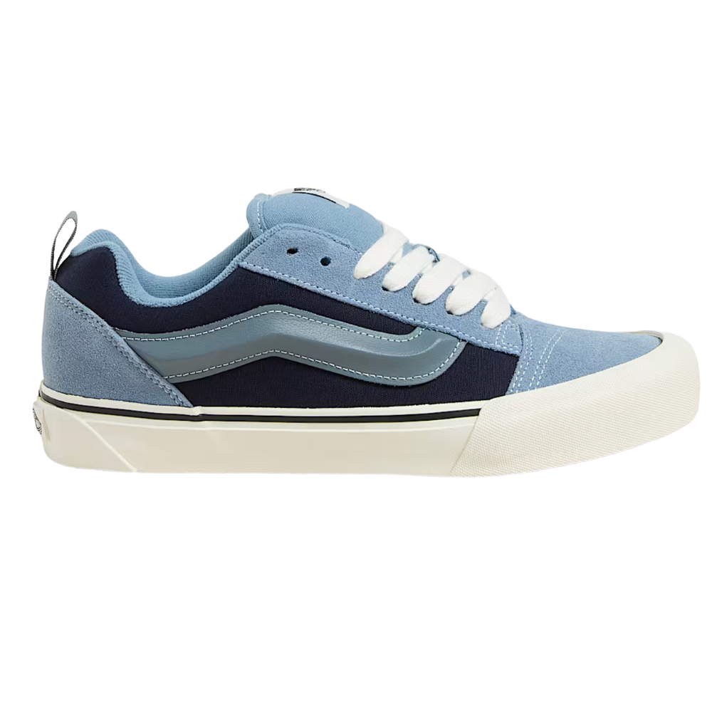 Der Vans Knu Skool Tri-Tone Parisian Night haucht einem Klassiker aus den 1990er Jahren neues Leben ein. Damals waren Skateschuhe groß und auffällig, und genau das findest du auch in diesem neu gestalteten niedrigen Modell. Das robuste Obermaterial aus Wildleder lässt sich mühelos mit der klobigen Zunge und dem Knöchelkragen kombinieren, so dass du einen Schuh erhältst, der sowohl bequem als auch stylisch ist, mit einer Anspielung auf seine Old Skool-Wurzeln.