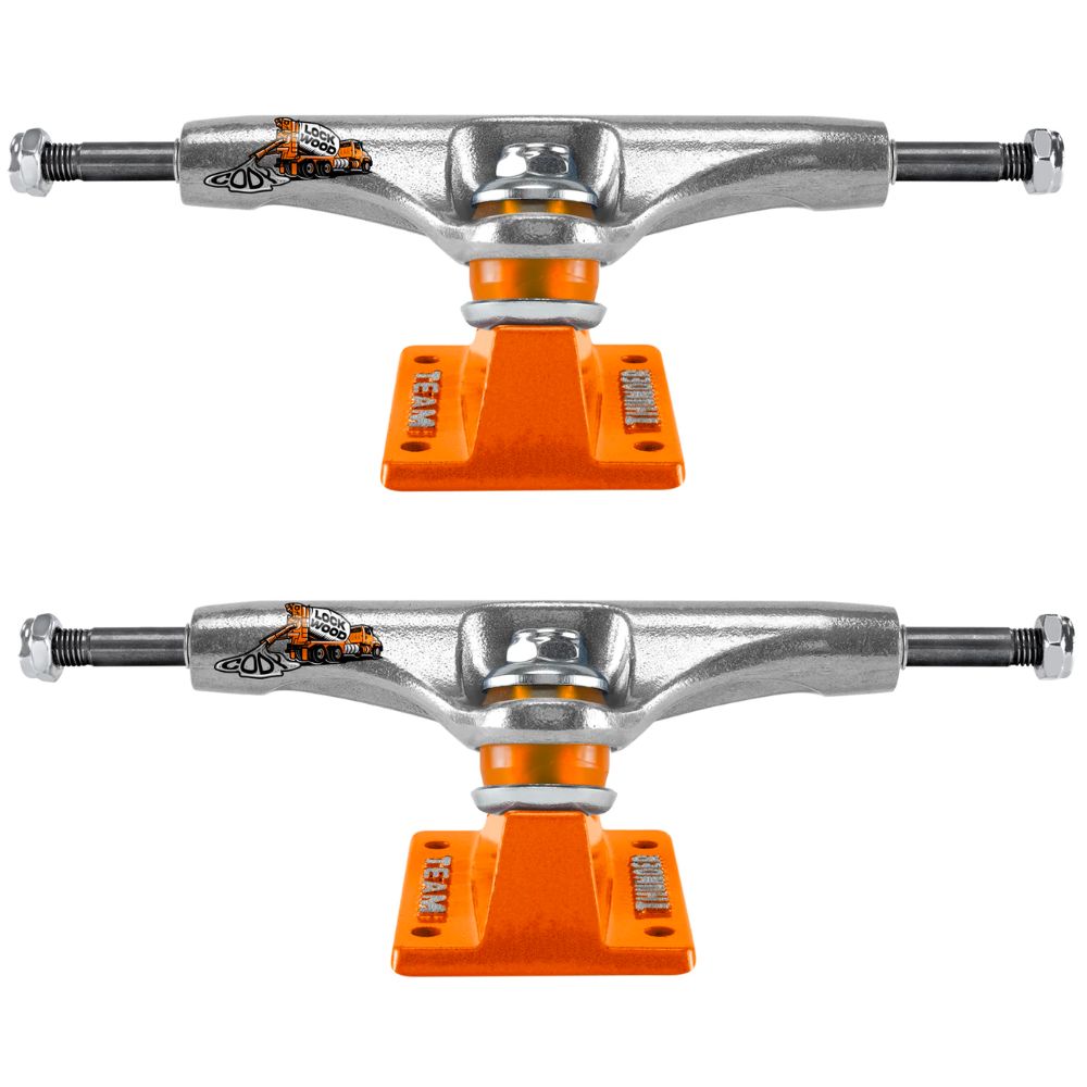 De Thunder Wilkins Pro 149 Skateboard Trucks werden gemaakt door het bekende merk Thunder Trucks. Dit geweldige merk werd opgericht in 1986 en maakt sindsdien High Quality trucks voor de skate industrie. Ze hebben een awesome waslijst aan pro's zoals Ed Templeton, Dylan Ridere, Chris Cole, Mark Appleyard en nog veel meer. Thunder Trucks zit onder de vleugels van het Amerikaanse bedrijf Deluxe Distribution en garandeert dus topkwaliteit samen met merken zoals Real Skateboards, Krooked Skateboards en Venture Trucks. Deze prijs geldt voor een setje van 2 Trucks.