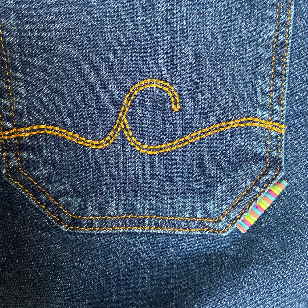 Achterzak met een opvallend gekleurd accent