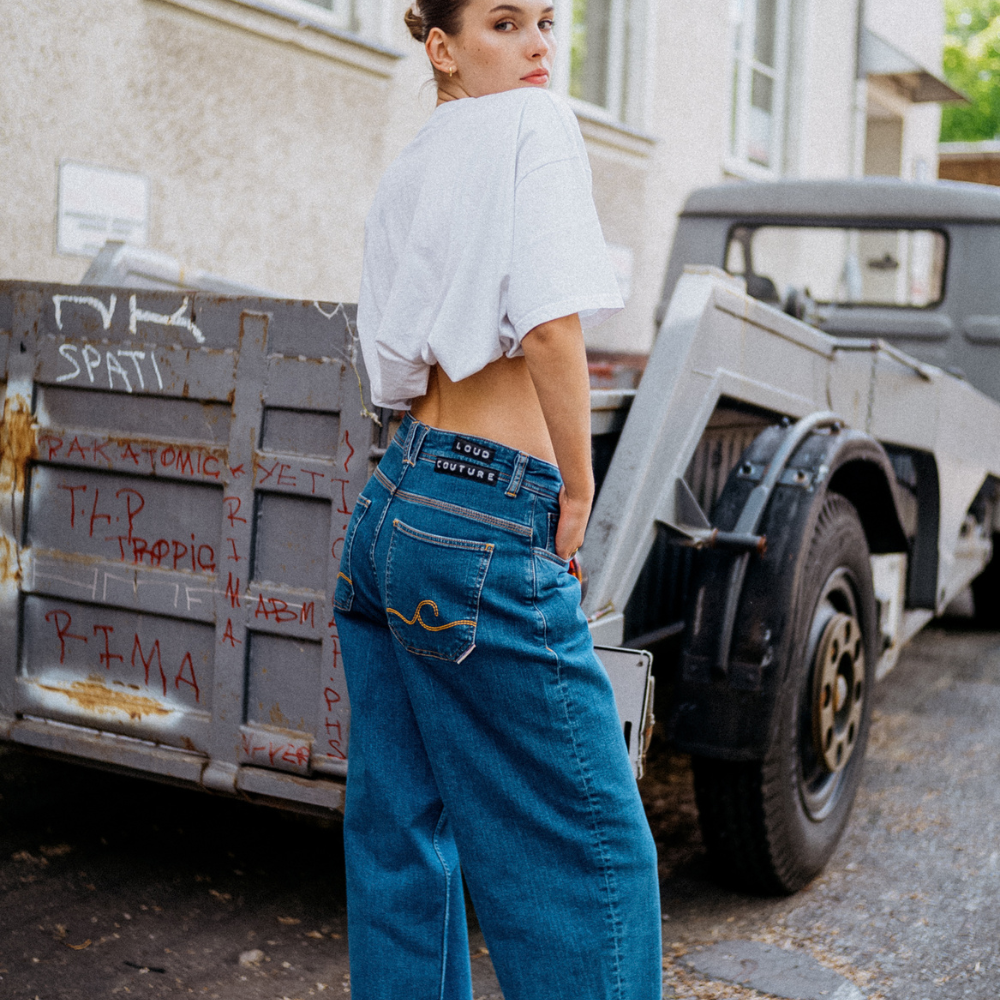 - Loud Couture patches aan de achterkant van de tailleband