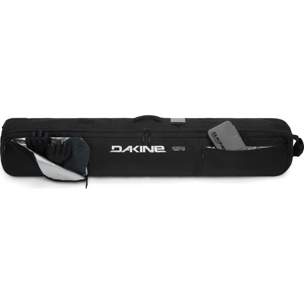 Die Dakine Low Roller Snowboard Bag - Black ist der perfekte Reisebegleiter für Wochenendtrips in die nahegelegenen Berge und wochenlange Abenteuer. Diese Tasche bietet vollen Schutz mit 360-Grad-Polsterung, so dass Ihr Snowboard(s), Ihre Schuhe und Ihre Oberbekleidung sicher verstaut sind. Das Hauptfach bietet Platz für ein Snowboard mit montierten Bindungen oder zwei Snowboards ohne Bindungen sowie eine abnehmbare Schuhtasche. Die Tasche verfügt über eine externe Reißverschlusstasche für wichtige Gegenstände und einen Griff, der in Verbindung mit Rollgepäck einen einfachen Transport mit einer Hand ermöglicht. Die robusten Urethan-Räder rollen problemlos durch Flughäfen und Parkhäuser.