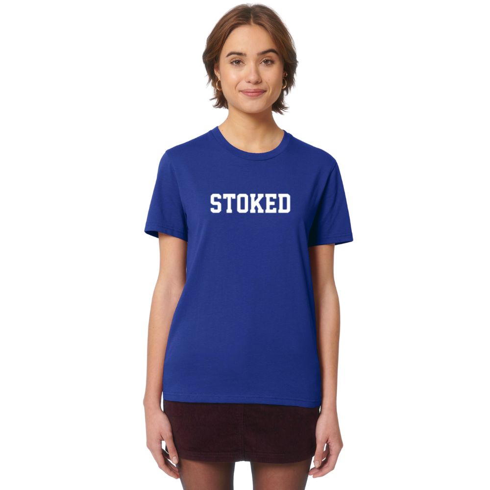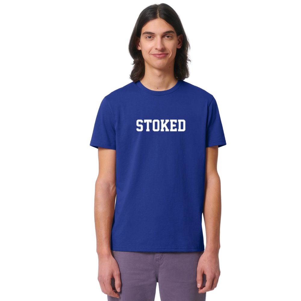Met de Maxi Script T-Shirt Worker Blue van Stoked Board Co represent je jouw favoriete boardmerk met classy style. Het Stoked Script logo groot op de borst laat zien hoe hyped jij bent en geeft een mooi contrast op de T-shirt. De verstevigingsband in de hals en het breed dubbel stiksel maken deze T-shirt helemaal af.