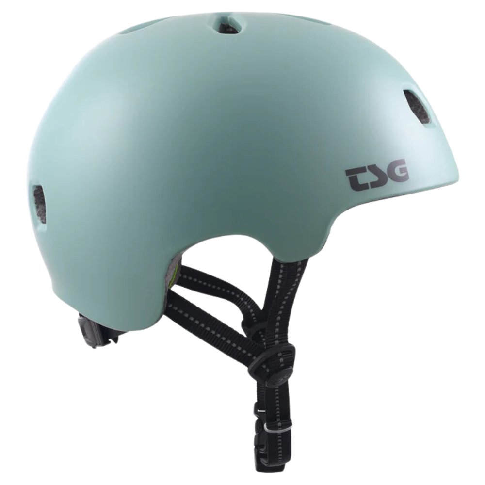 Der TSG Meta Solid Colour Satin Oil Blue kombiniert exzellente TSG Qualität mit einem super schlanken Design. Dieser Helm passt wirklich gut dank seiner niedrigen Passform. TSG verwendet für diesen Helm eine In-Mold-Konstruktion, bei der das geschützte EPS-Material direkt in die Hartschale aus PC eingearbeitet ist. Der Helm hat eine gute Passform, ohne dass er verrutscht oder wackelt. Die Belüftungslöcher sorgen für Kühlung beim Skaten. Die bequemen Polster können je nach Größe angepasst werden, man kann sie auch herausnehmen und waschen.