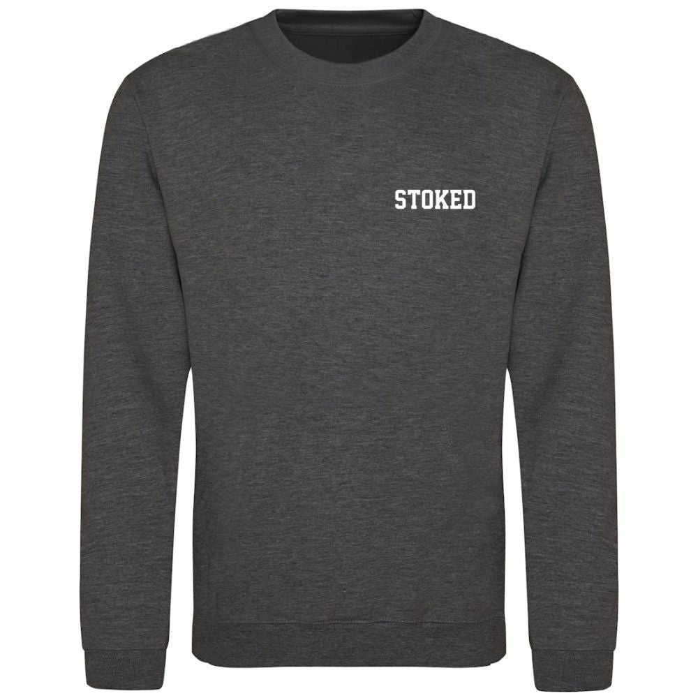 Met de Mini Script Sweater Charcoal Heather van Stoked Board Co represent je jouw favoriete boardmerk met classy style. Het Stoked Script logo subtiel op de borst laat zien hoe hyped jij bent en geeft een mooi contrast op de sweater. Een comfortabele neklijn en zachte binnenkant maken deze sweater helemaal af.