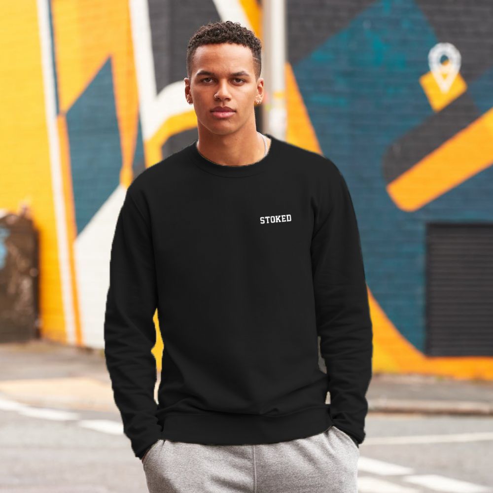 Met de Mini Script Sweater Deep Black van Stoked Board Co represent je jouw favoriete boardmerk met classy style. Het Stoked Script logo subtiel op de borst laat zien hoe hyped jij bent en geeft een mooi contrast op de sweater. Een comfortabele neklijn en zachte binnenkant maken deze sweater helemaal af.