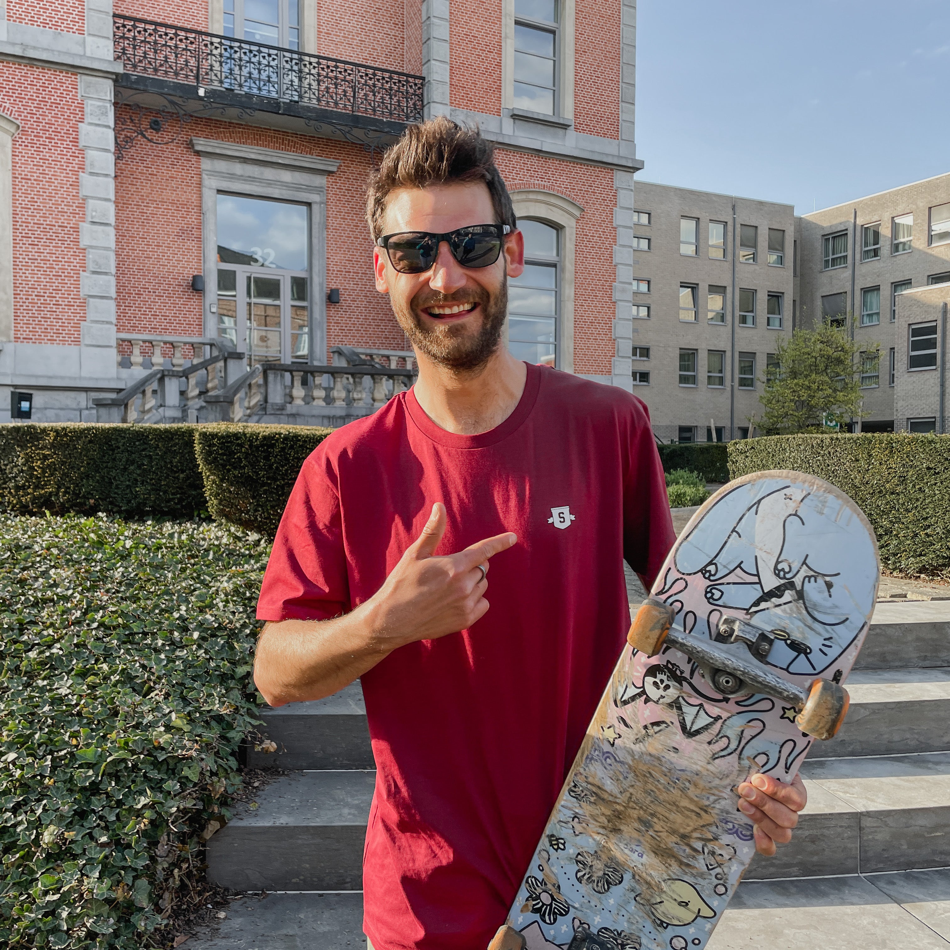 - Met soortgelijke kleuren wassen. Niet over de print strijken en binnenstebuiten wassen en strijken.