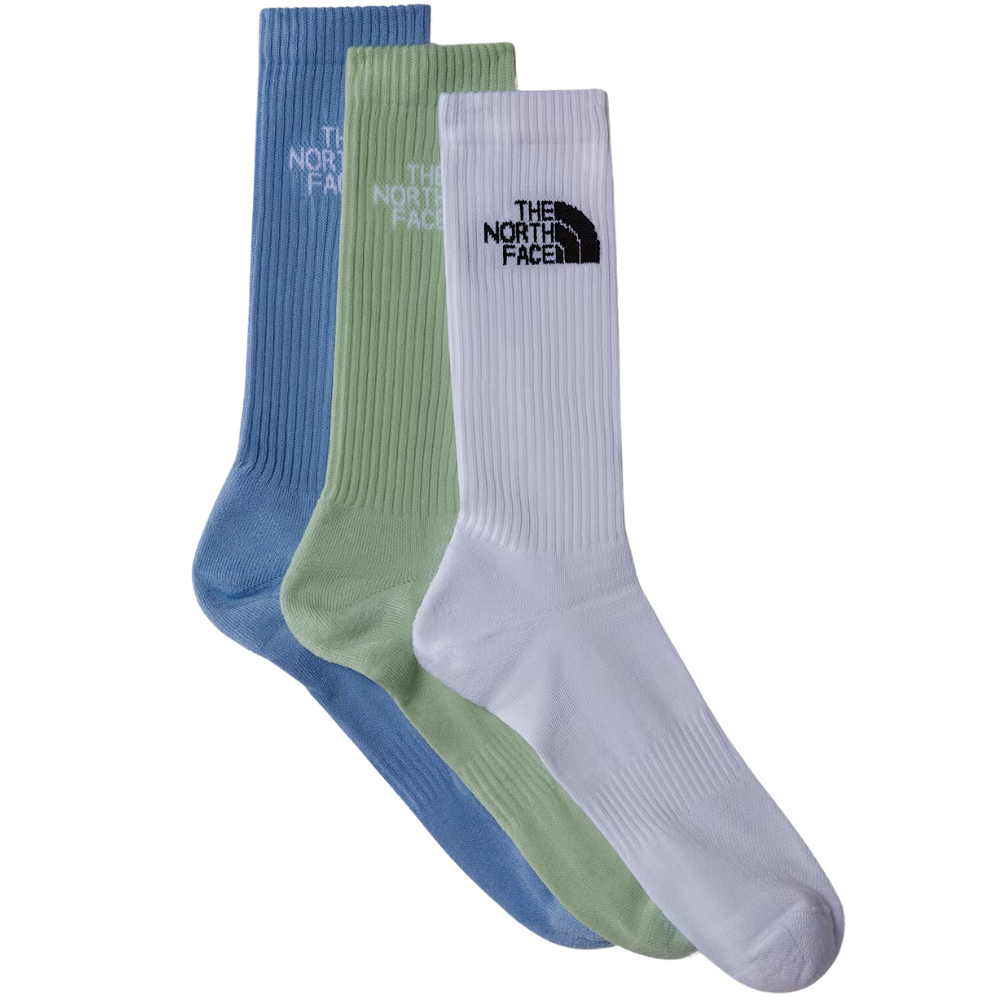 Weiter gehen und härter arbeiten. Die Multi Sport Cush Crew Sock 3P TNF White-Misty Sage-Steel Blue Socken von The North Face verfügen über eine Polsterung an den Fersen und der Zehenkappe, eine leicht gepolsterte Sohle und spezielle Belüftungszonen, die Ihre Füße kühl halten und bereit sind, mehr zu erkunden - bis zum letzten Kilometer.