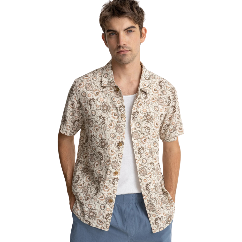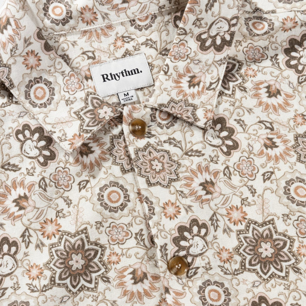 Das Rhythm Raya Paisley Shirt Natural ist aus einer hochwertigen Leinen-Viskose-Mischung gewebt und hat einen zeitlosen Vintage-Stil. Es ist ein Must-Have für die Sommergarderobe. Das Hemd ist gewaschen für ein Vintage-Gefühl und hat eine klassische Passform.