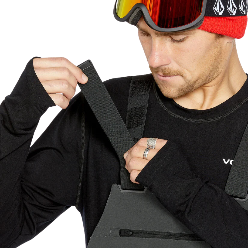 Der Volcom Roan Snowboard Bib Overall - Charcoal bietet den perfekten Schutz vor den Elementen mit 15K Wasserdichtigkeit und Atmungsaktivität. Hergestellt aus recycelten REPREVE®-Fasern und einer PFC-freien DWR-Beschichtung, kombiniert dieses 2-lagige V-Science-Obermaterial umweltfreundliche Materialien mit ausgezeichneter Leistung. Mit ihrer entspannten Passform, den verstellbaren Hosenträgern und den Neopren-Seiteneinsätzen bietet die Roan Bib eine bequeme Passform und Bewegungsfreiheit, während vollständig versiegelte Nähte und die Zip Tech®-Schnittstelle für optimalen Schneeschutz sorgen.