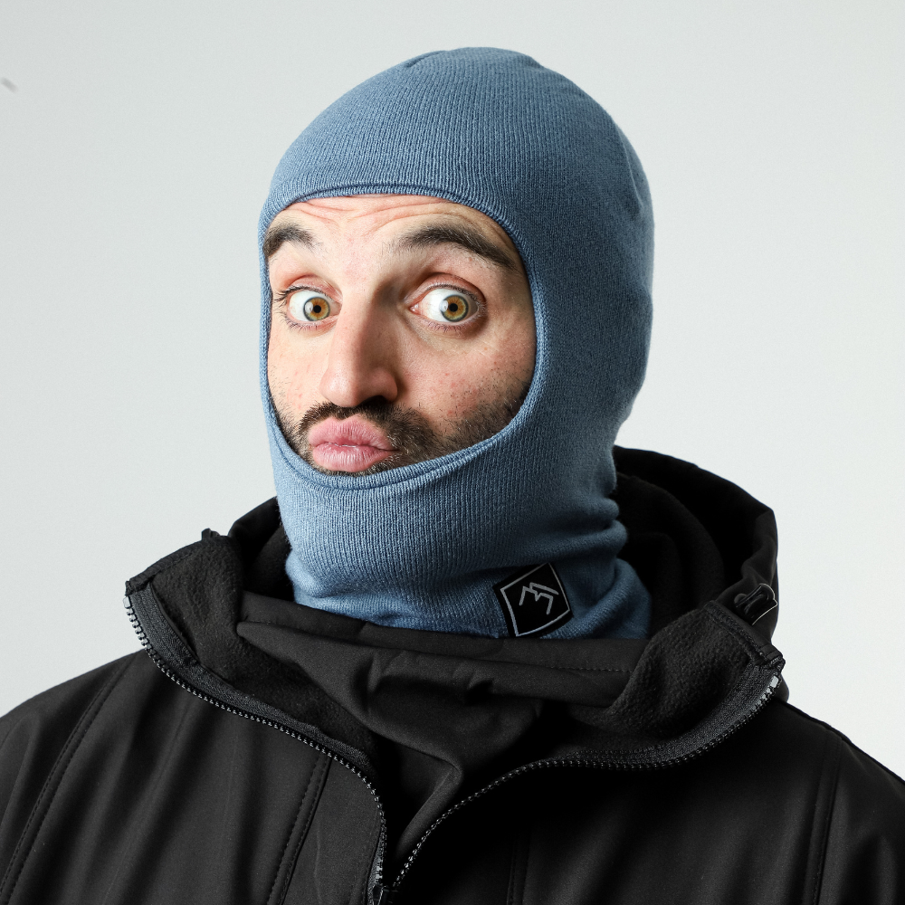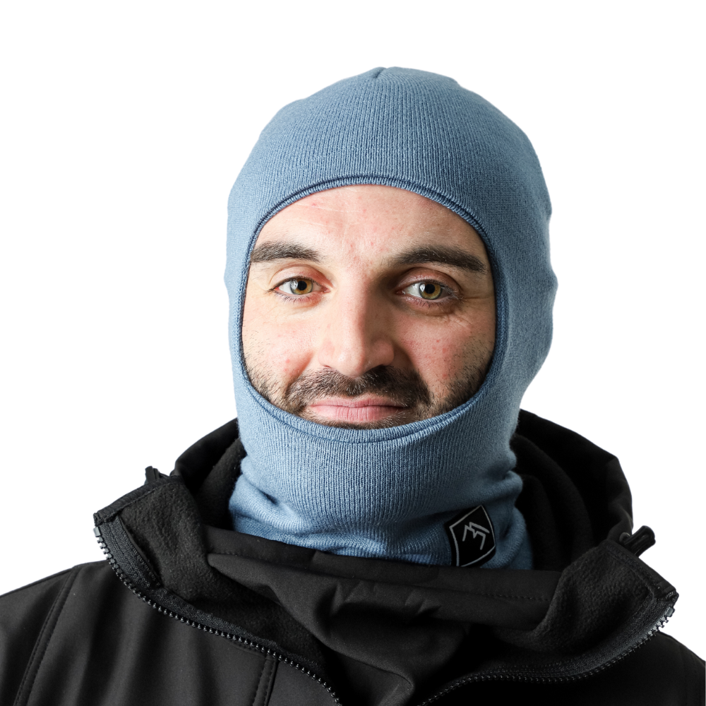 Mit der Robbin Hood Balaclava Lotus Blue Feinstrick-Sturmhaube hältst du dein Gesicht schön warm und stylisch. Dank der engen Passform sitzt sie auch unter einem Helm sehr gut.