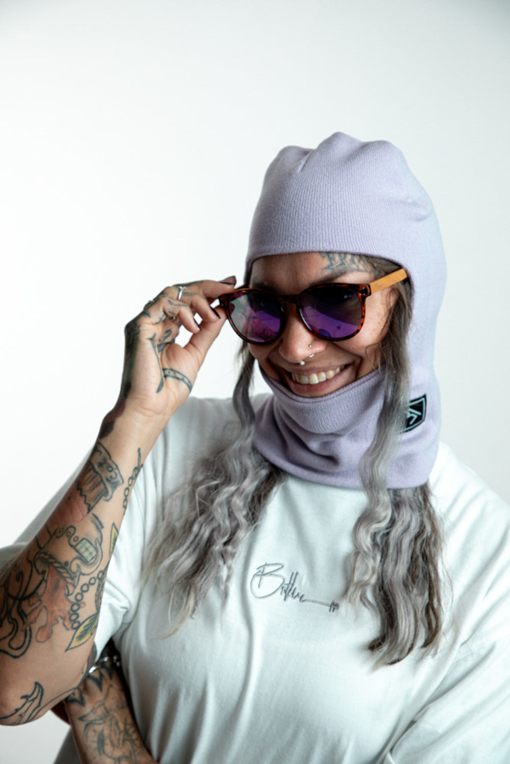 Halten Sie Ihr Gesicht warm und stylisch mit der Robbin Hood Lilac Feinstrick-Sturmhaube, ideal für alle, die eine enge Passform wünschen. Dieses vielseitige Teil wirkt Wunder unter Ihrem Helm und bietet aktualisierte Kunstwerke, Schnitt, Form und Dicke für die Saison.