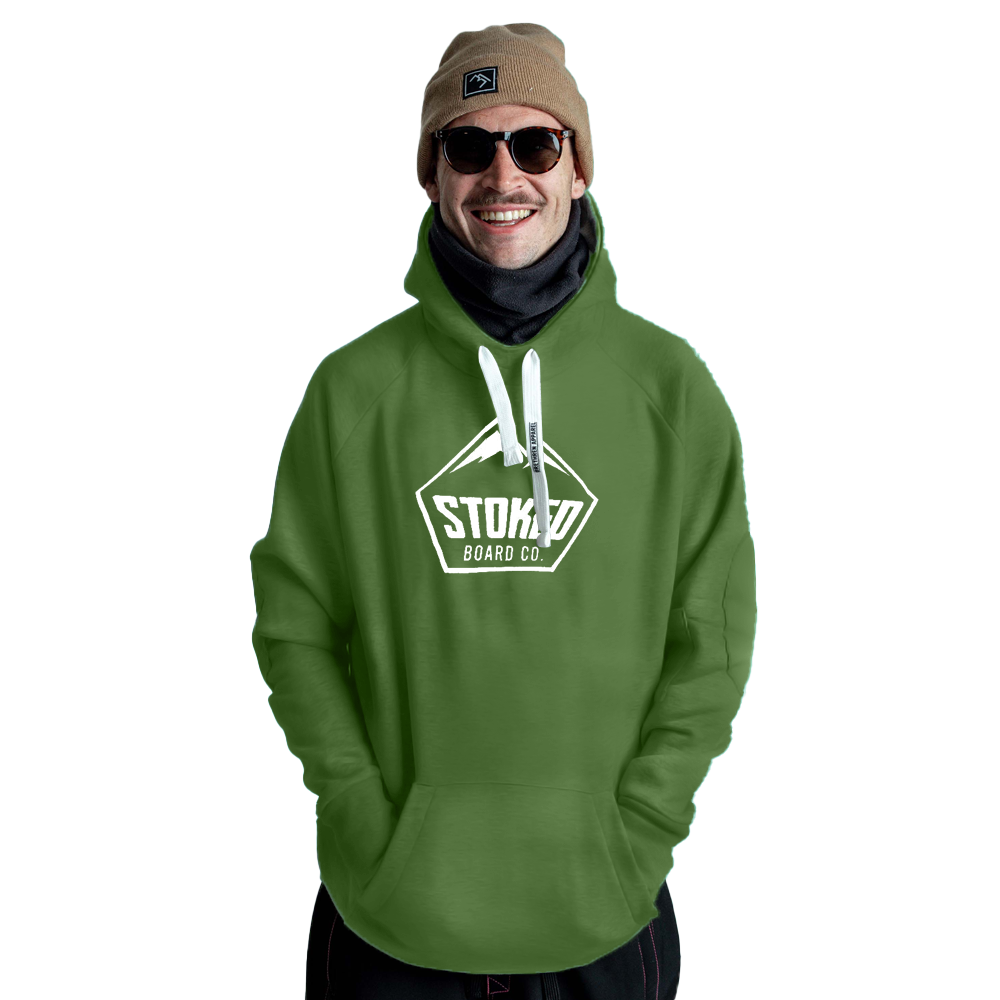 Der Stoked Board Co Shred Snowboard Kapuzenpullover Grün ist der Shred-Hoodie, den du brauchst, um die Berge zu bezwingen und dabei Stoked Board Co zu repräsentieren. Er wurde von Boardern für Boarder getestet und in Zusammenarbeit mit Brethren Apparel entworfen. Der Shred Snowboard Hoodie kommt mit einer ganzen Reihe von Features, die dich warm, trocken und komfortabel halten. Die ganze Saison lang.