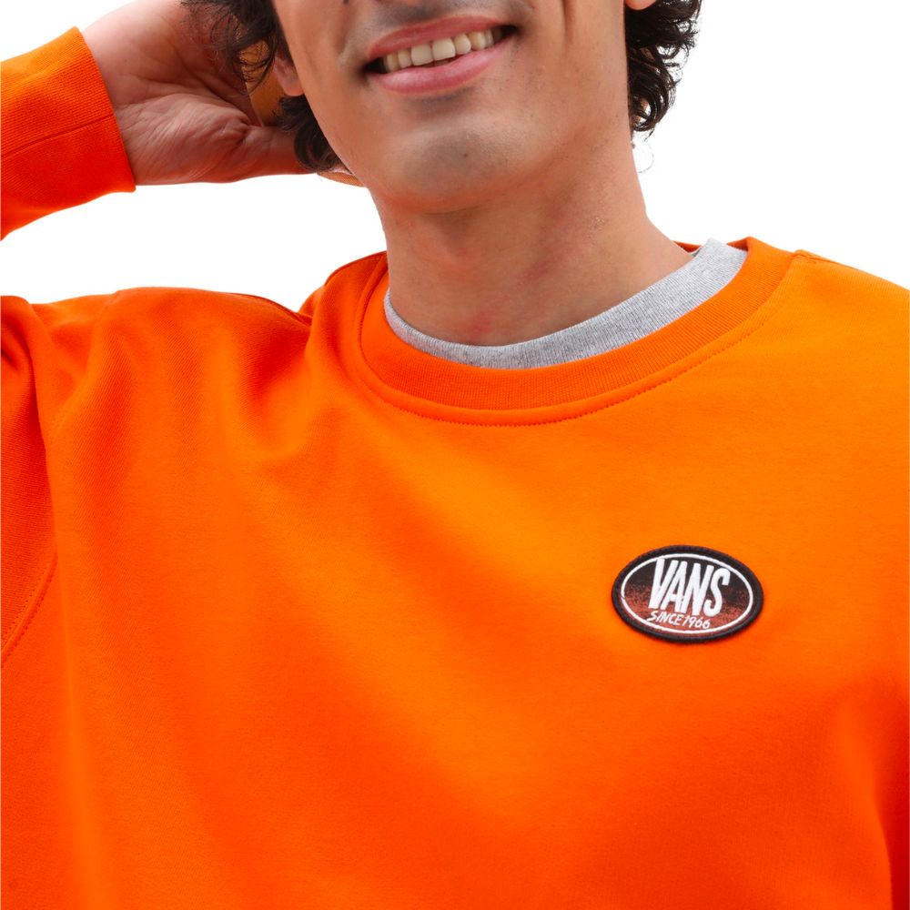 Met de Vans Skate Classic Crew Sweatshirt Ibis ben je klaar voor de koude dagen en avonden op en naast je skateboard. Deze comfortabele crewneck sweater is gemaakt van zacht en duurzaam fleece materiaal dat je warm houdt als de temperatuur daalt. De felle kleur geeft de trui een opvallende look die perfect is voor elke skater die zich wil onderscheiden. Deze sweater heeft een relaxed fit en is voorzien van het iconische Vans logo op de borst, waarmee je jouw liefde voor skateboarden en dit legendarische skatemerk kunt laten zien.