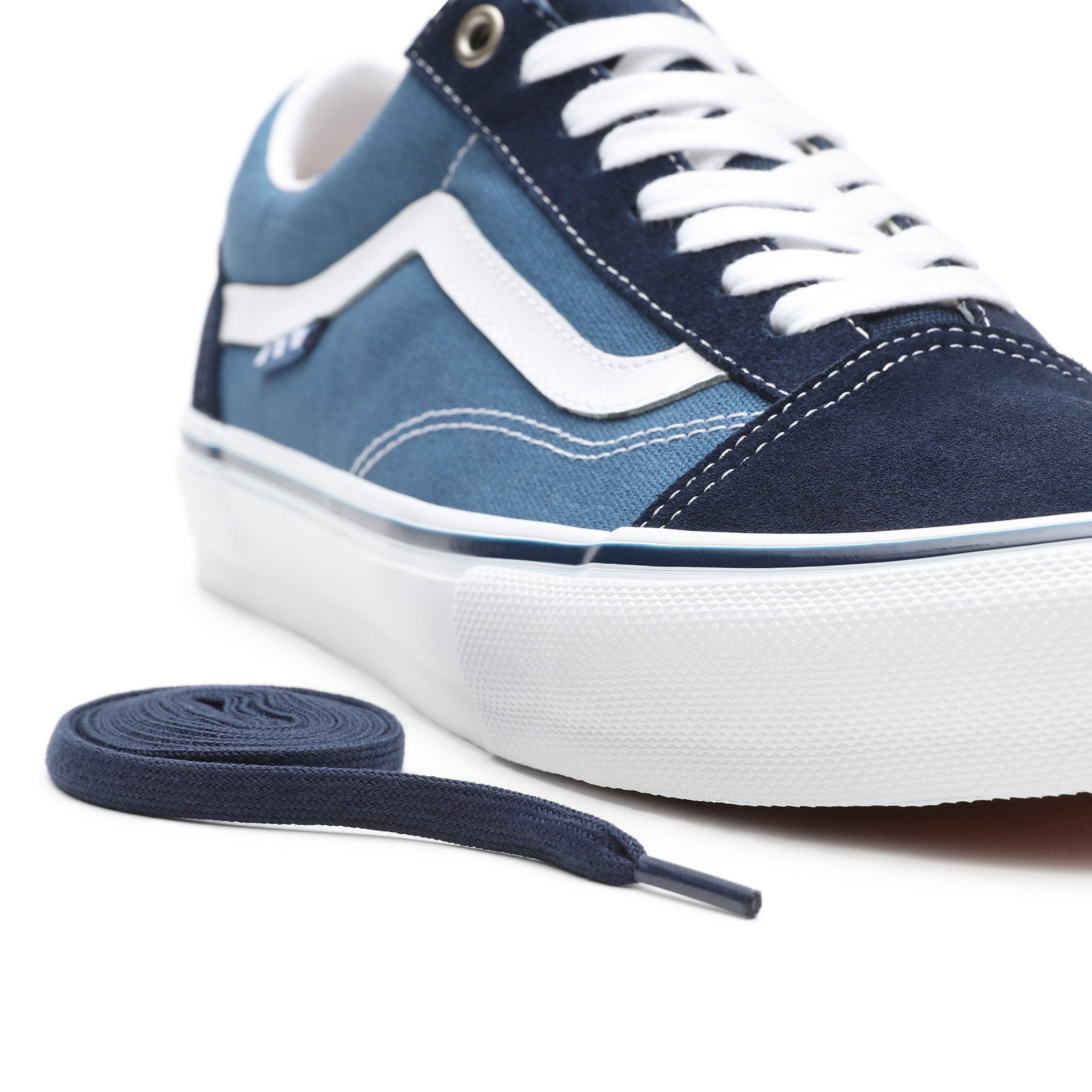 De Vans Skate Old Skool Navy/White is de verbeterde Old Skool versie van de originele en inmiddels iconische lage schoen van Vans. Deze schoen heeft een bovenwerk van stevig canvas, de klassieke look van Vans, metalen veteroogjes en de kenmerkende rubberen wafelzool.