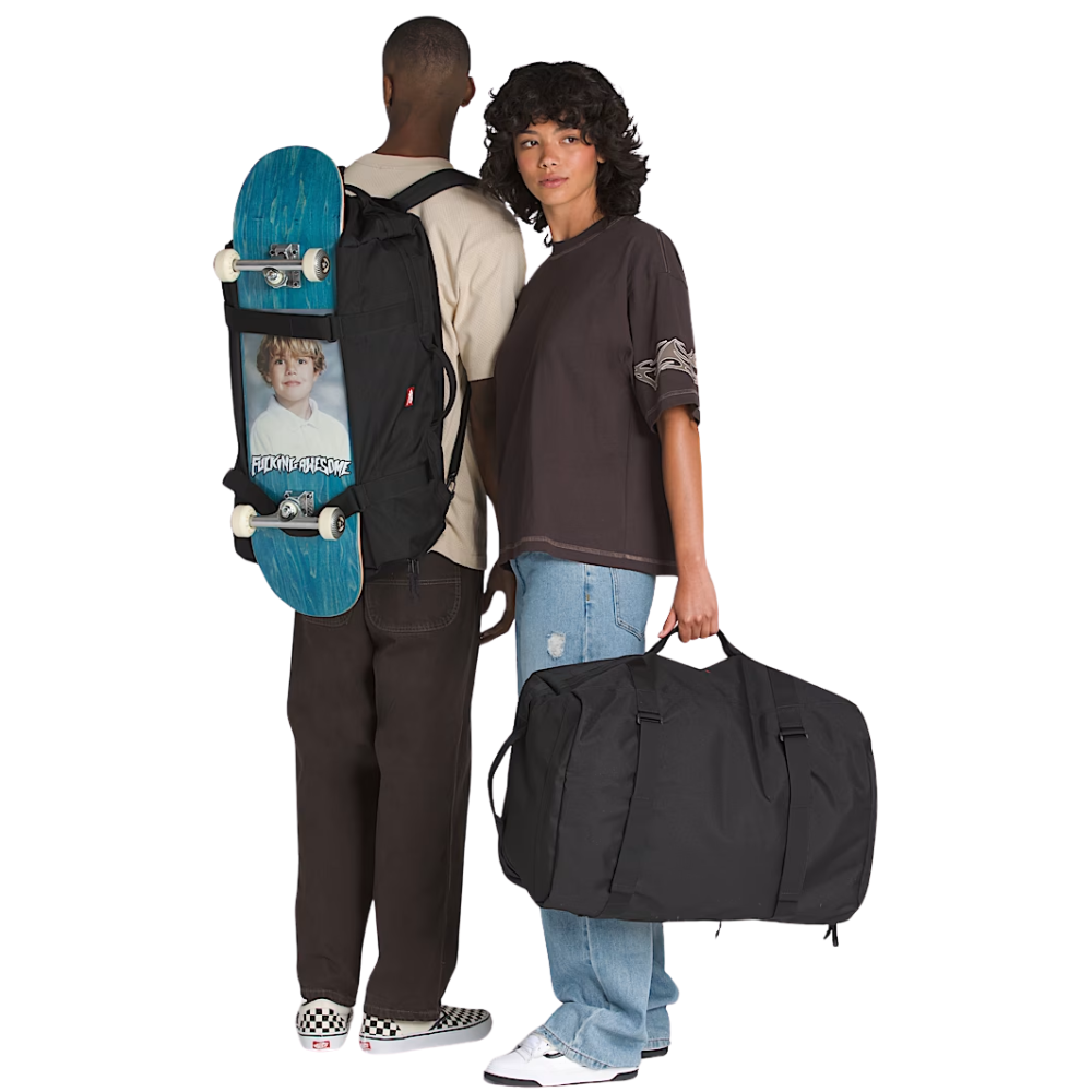 Der Vans Skate Overnight Pack ist der ideale Duffle-Rucksack für alles, von schnellen Ausflügen bis hin zu langen Skatesessions. Hergestellt aus superstarkem 500D Cordura-Nylon und beschichtet mit Polyurethan für zusätzlichen Schutz vor den Elementen, bietet diese Tasche Haltbarkeit ohne zusätzliches Gewicht. Der Skate-Strap macht es einfach, dein Board zu transportieren, während die Vans Skateboarding-Zierleisten für einen echten Streetwear-Look sorgen.